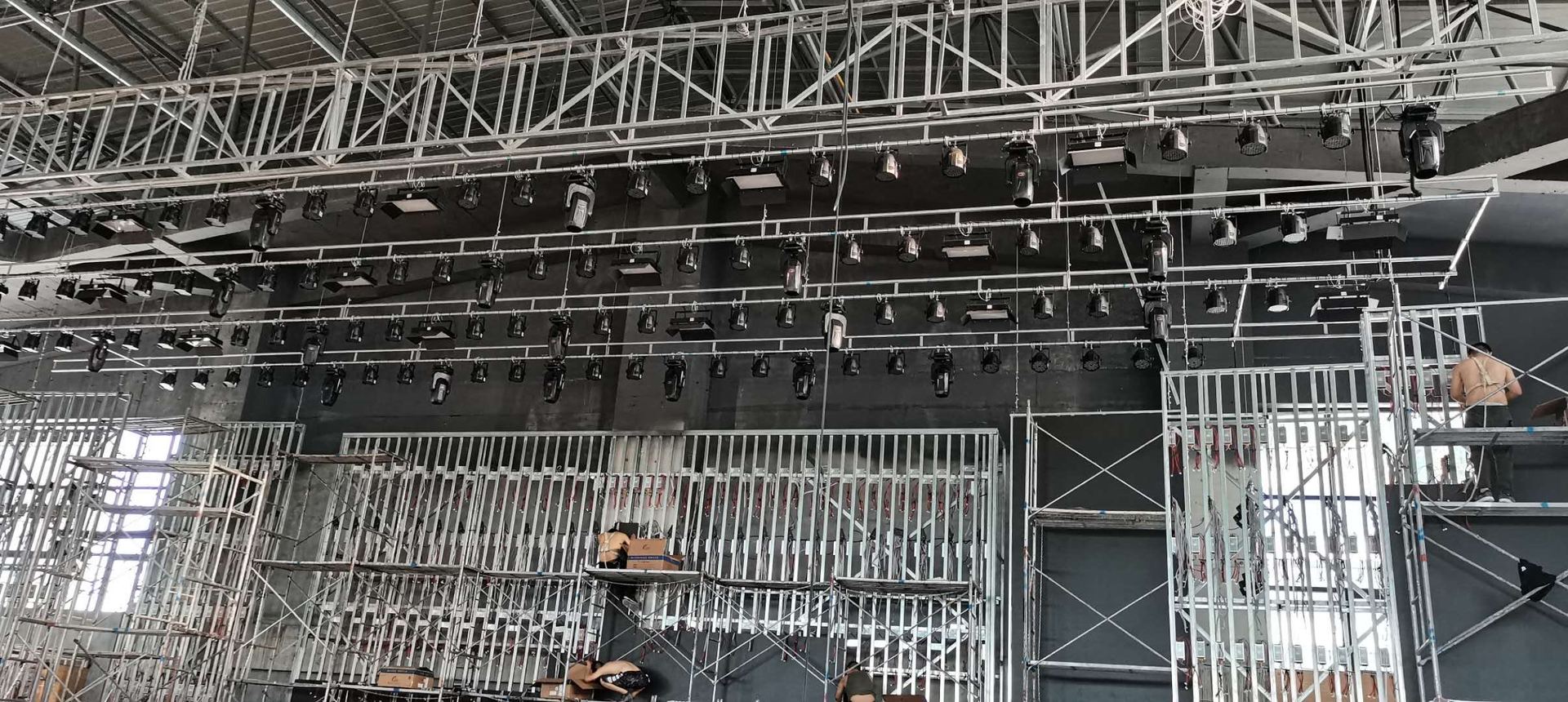 节目效果:空中形成打点、扇形、时空隧道、光束,几何、动画