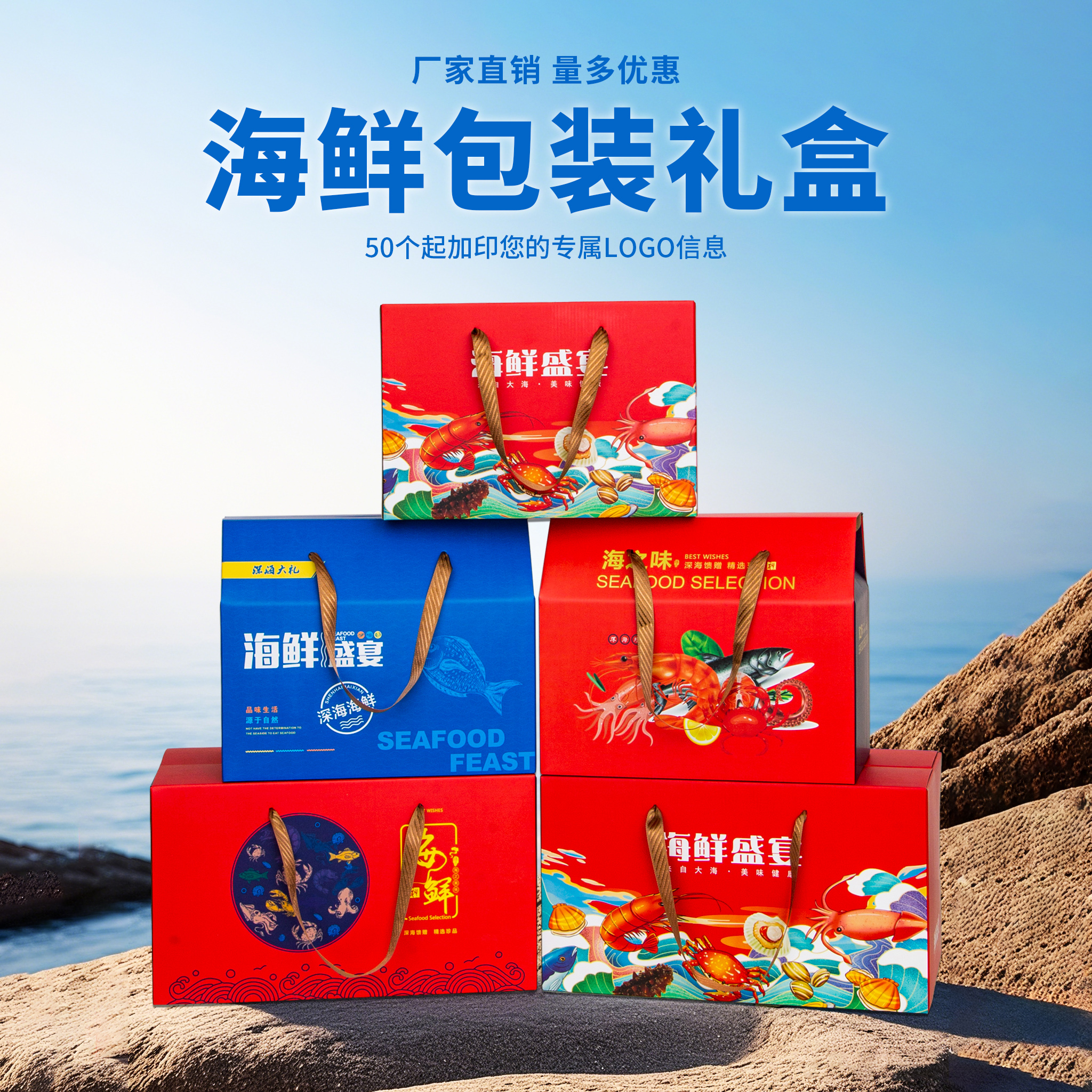年货节海鲜礼盒包装盒水产品干货鱼虾蟹礼品盒手提纸箱批发定 制