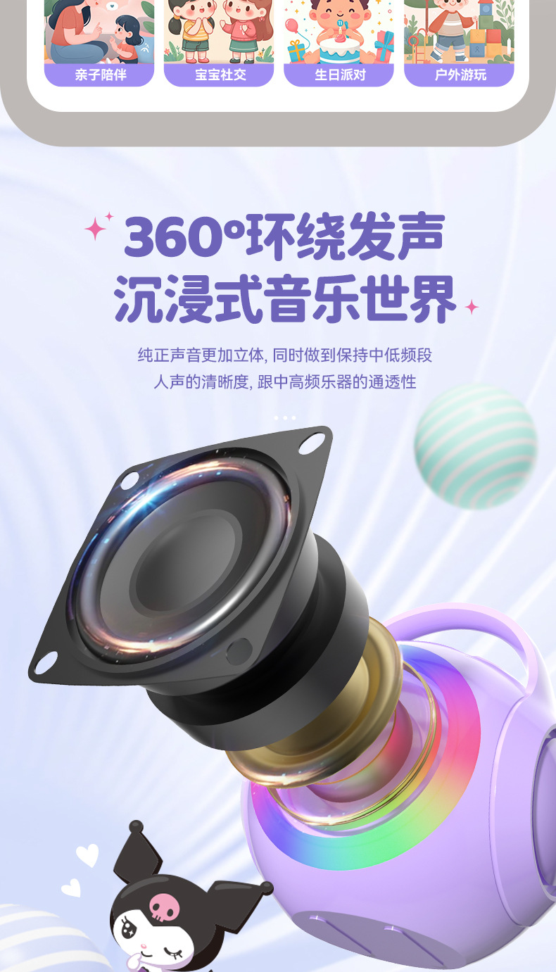 サンリオ Bluetooth スピーカー マイクセット 家庭用 屋外用 ポータブル かわいい 小型スピーカー 子供向けギフト