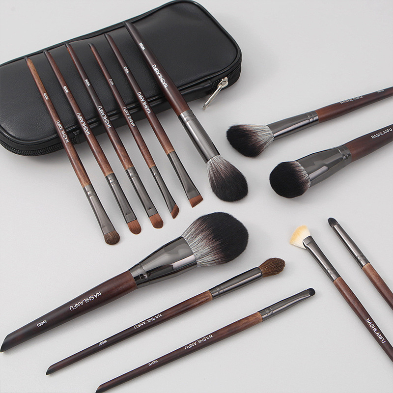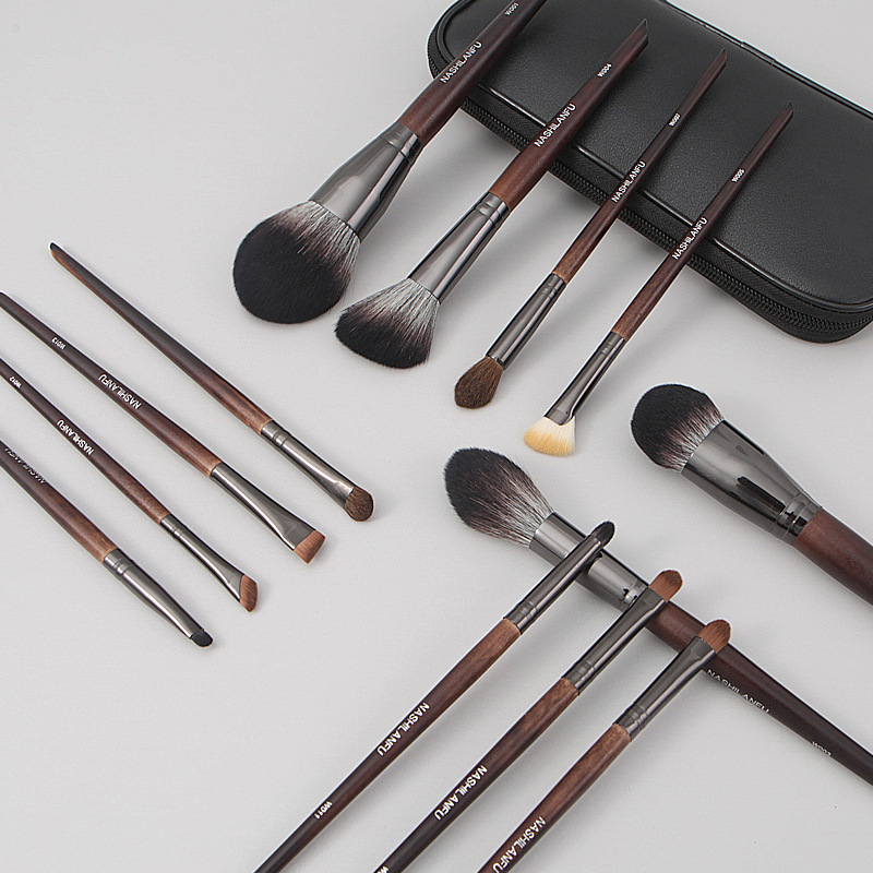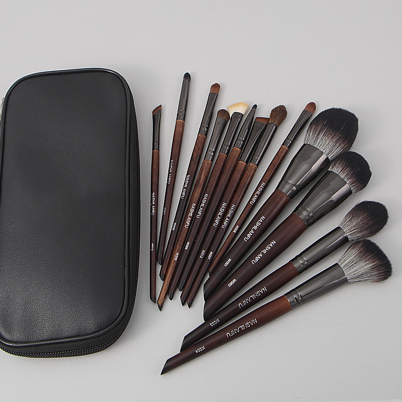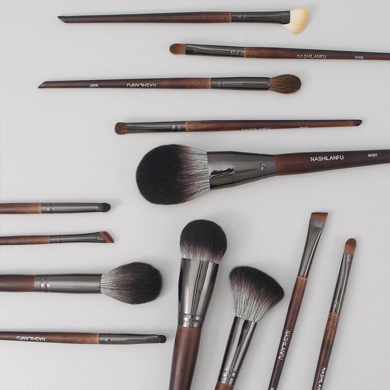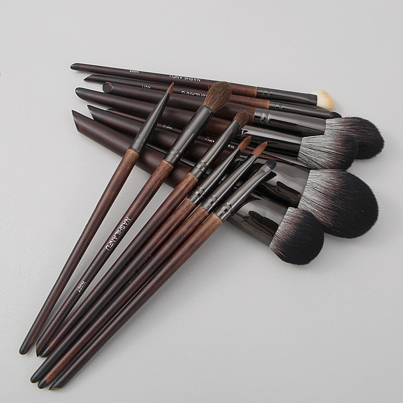 沧州新款14支原木柄软毛化妆刷套装动物毛眼影刷腮红刷修容刷美妆