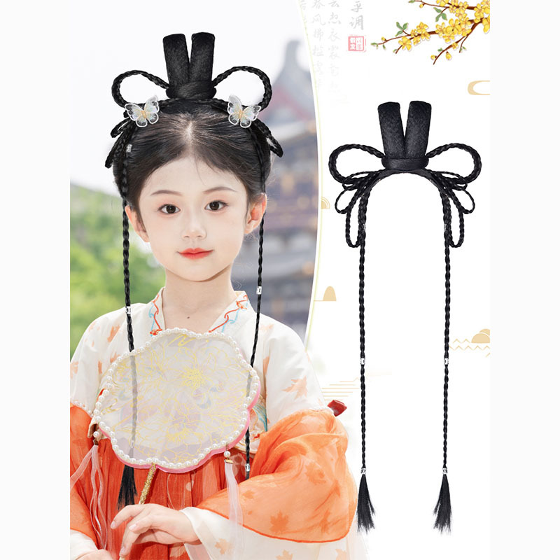 女の子韓服帽子かつらバッグ古代衣装アップヘアオールインワン怠惰なヘッドバンド古代スタイルのパフォーマンスパフォーマンスおだんごヘアバッグ