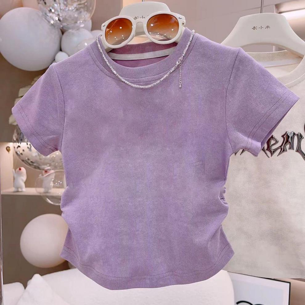 女児純綿tシャツ半袖上着夏夏服中小童2025新作デザイン感スリムプリントinsブーム