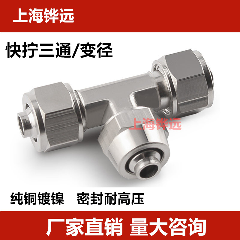 クイックねじ込み三方継手全銅エアガス管継手T型PE-4/6/8/10/12mm変径8-6 10-8