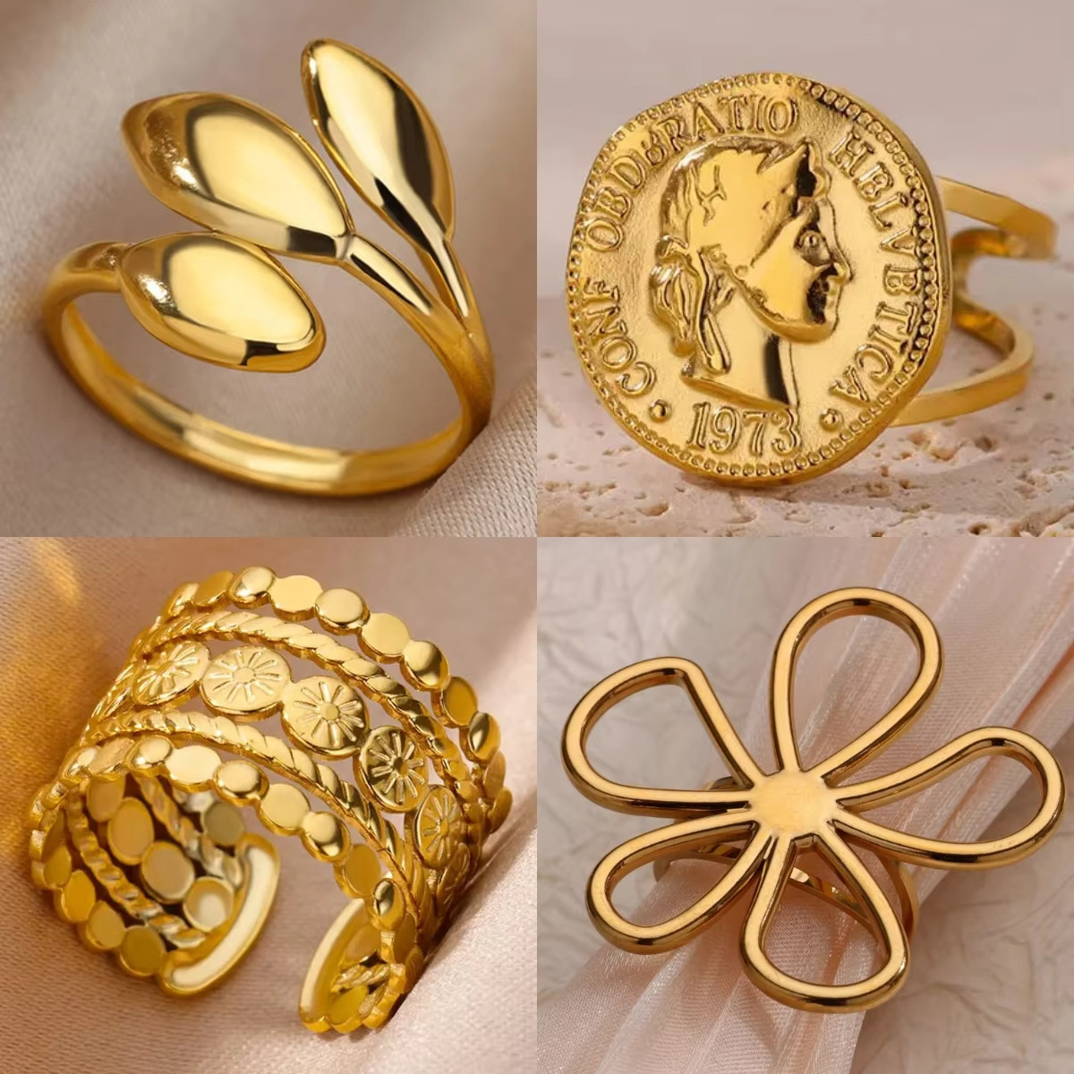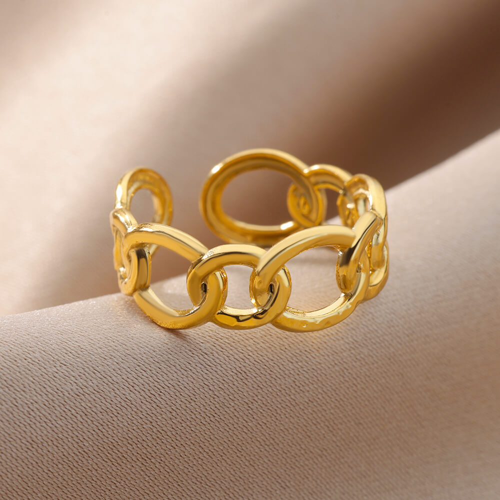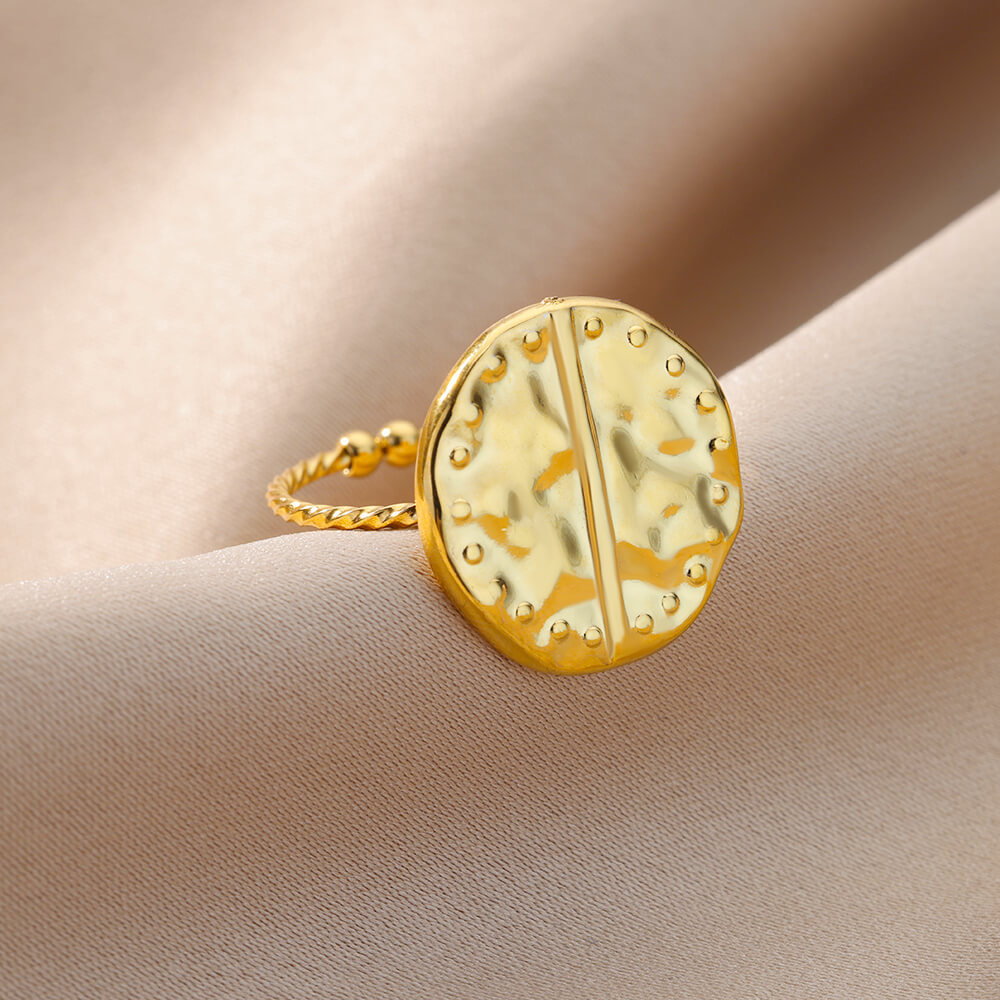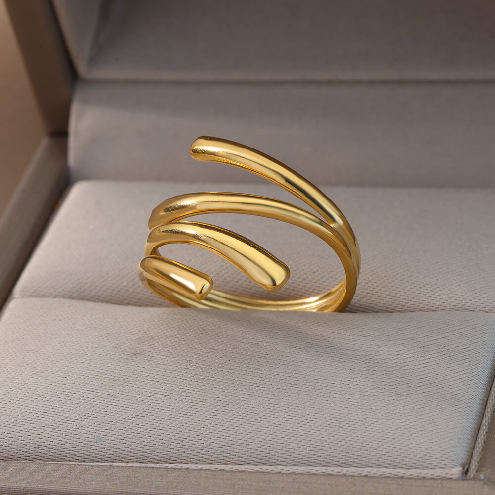 欧美跨境爆款镀18K金不锈钢戒指复古开口几何可调节指环婚礼珠宝