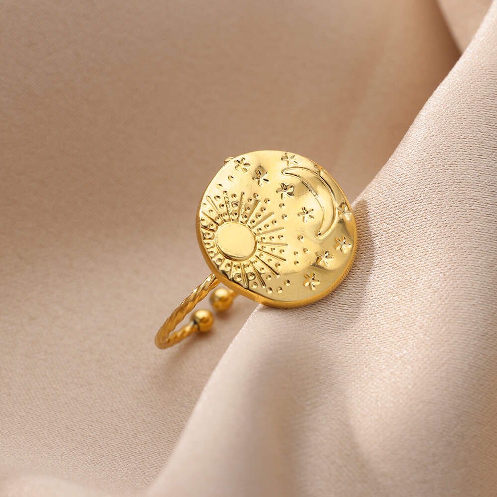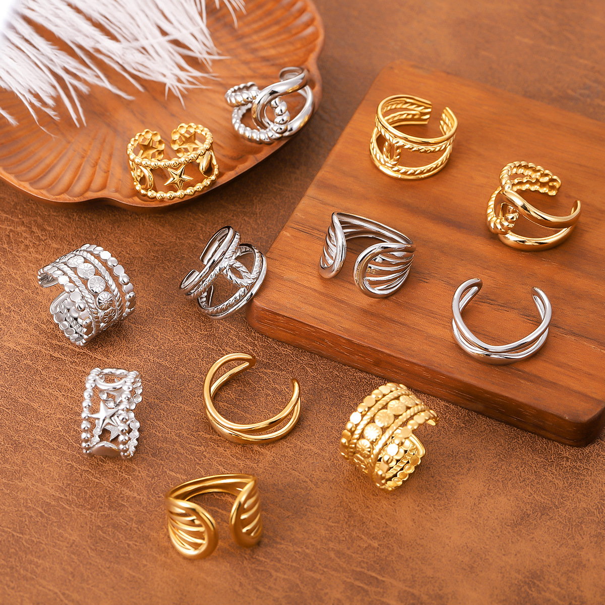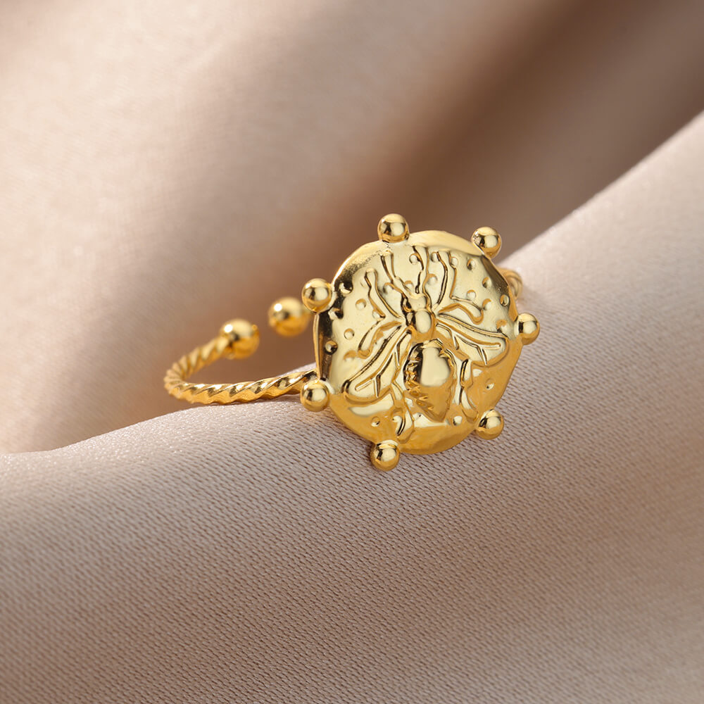 欧美跨境爆款镀18K金不锈钢戒指复古开口几何可调节指环婚礼珠宝