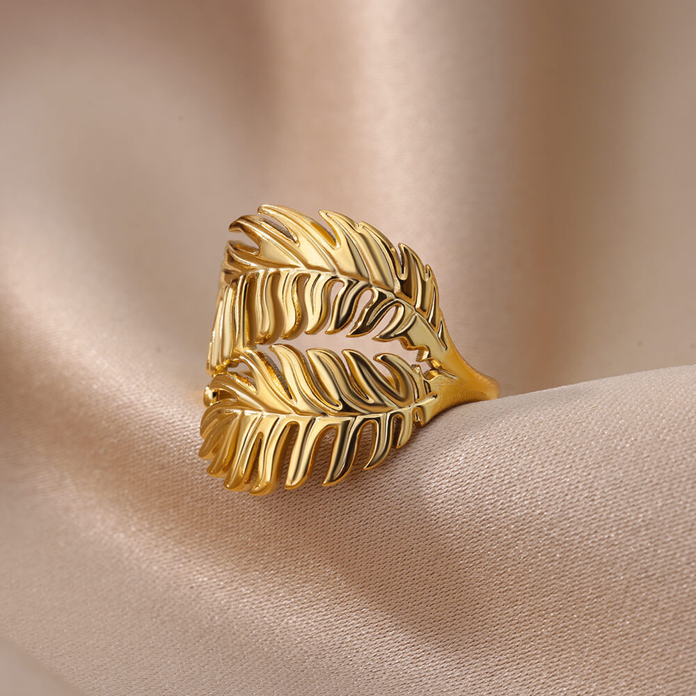 欧米流行ins風ステンレス三枚葉指輪女性流行調節18k金メッキチタン指輪