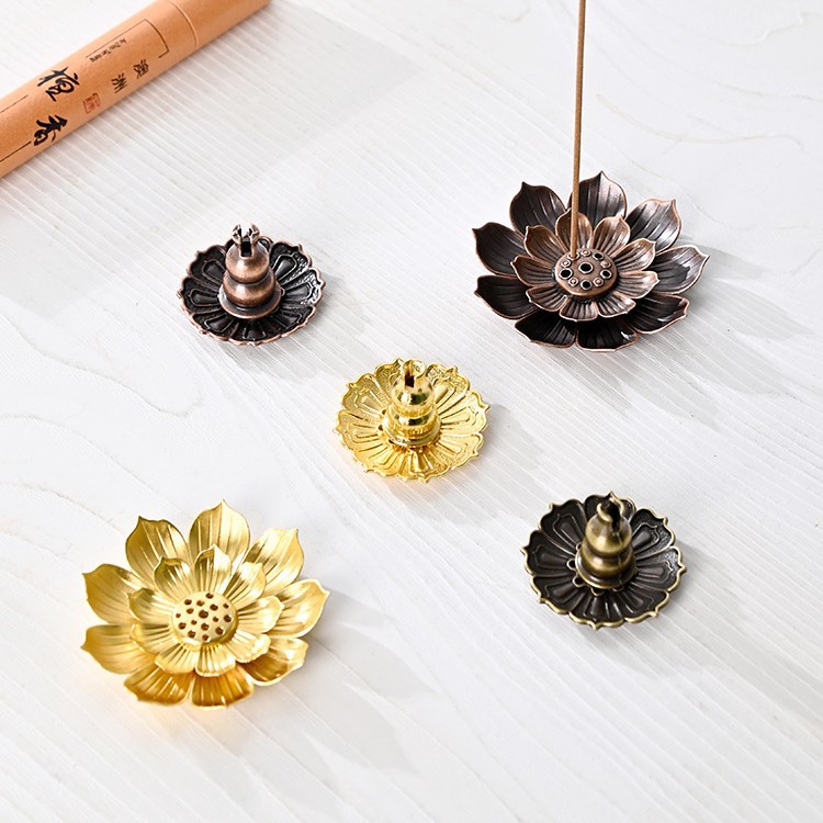 家庭用線香飾り、シンプルな蓮の花香立て、香炉、家庭用禅風香炉、香道アクセサリー、松の実香