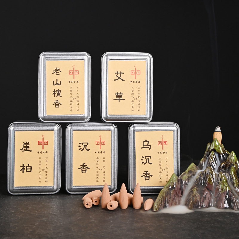長尺鉄箱入り逆流香塔香、回流香、艾草、中国式香、烏沈香、室内浄化松塔香