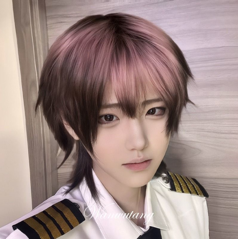【念念桃】假发男狼尾鲻鱼头男女通用男生短发粉色渐变假发全头套