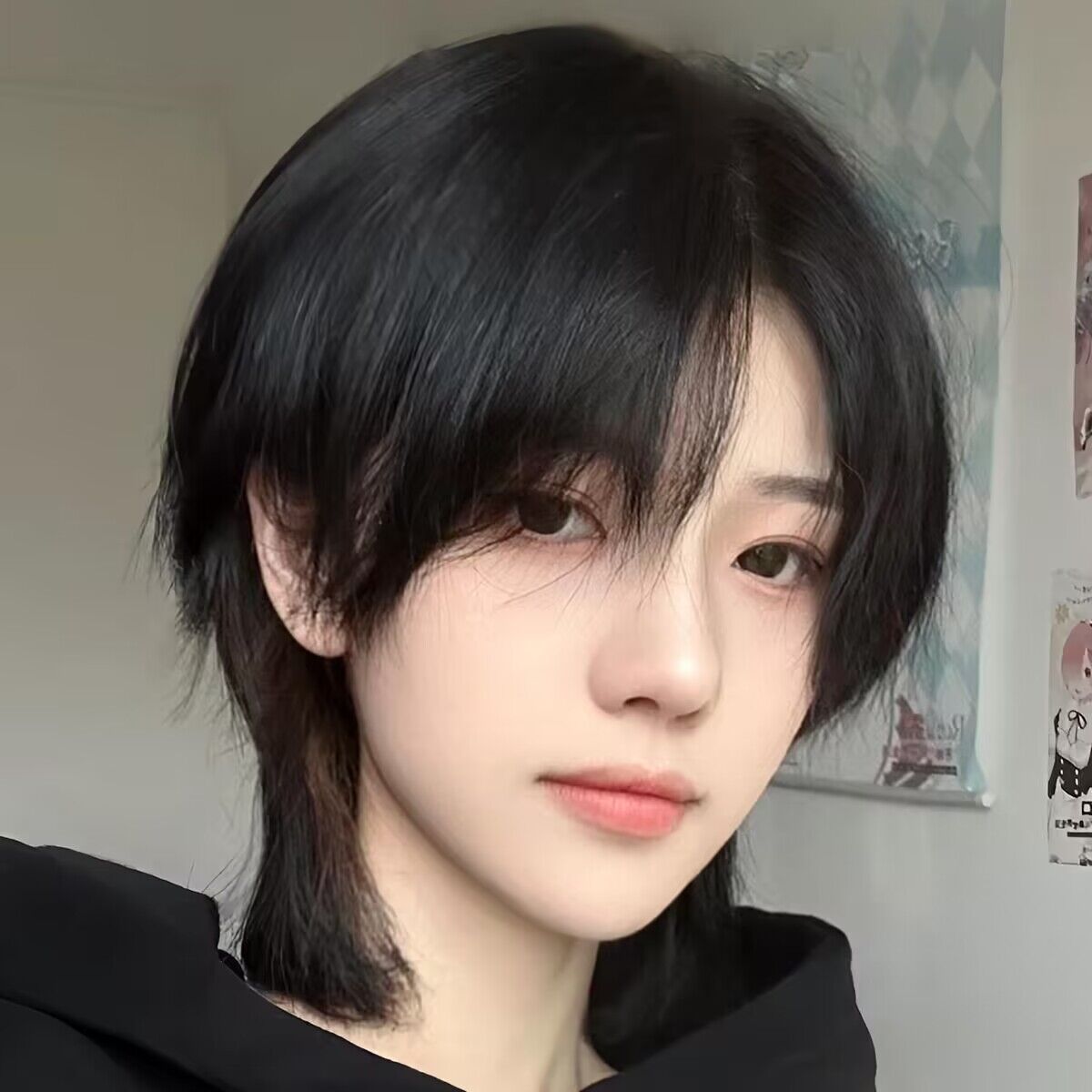 星程かつら黒茶色男女通用短直髪狼尾日系cos万用魚頭中性全頭カバー