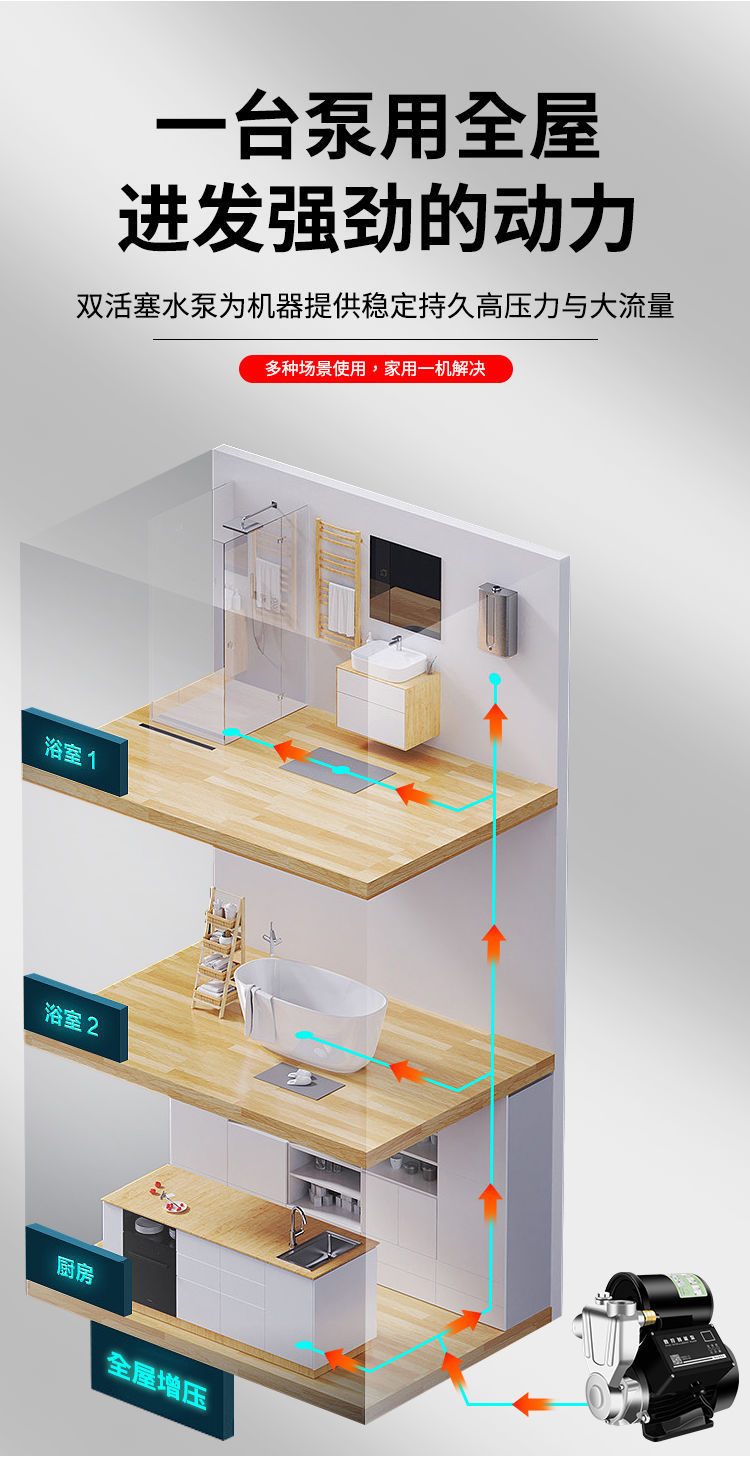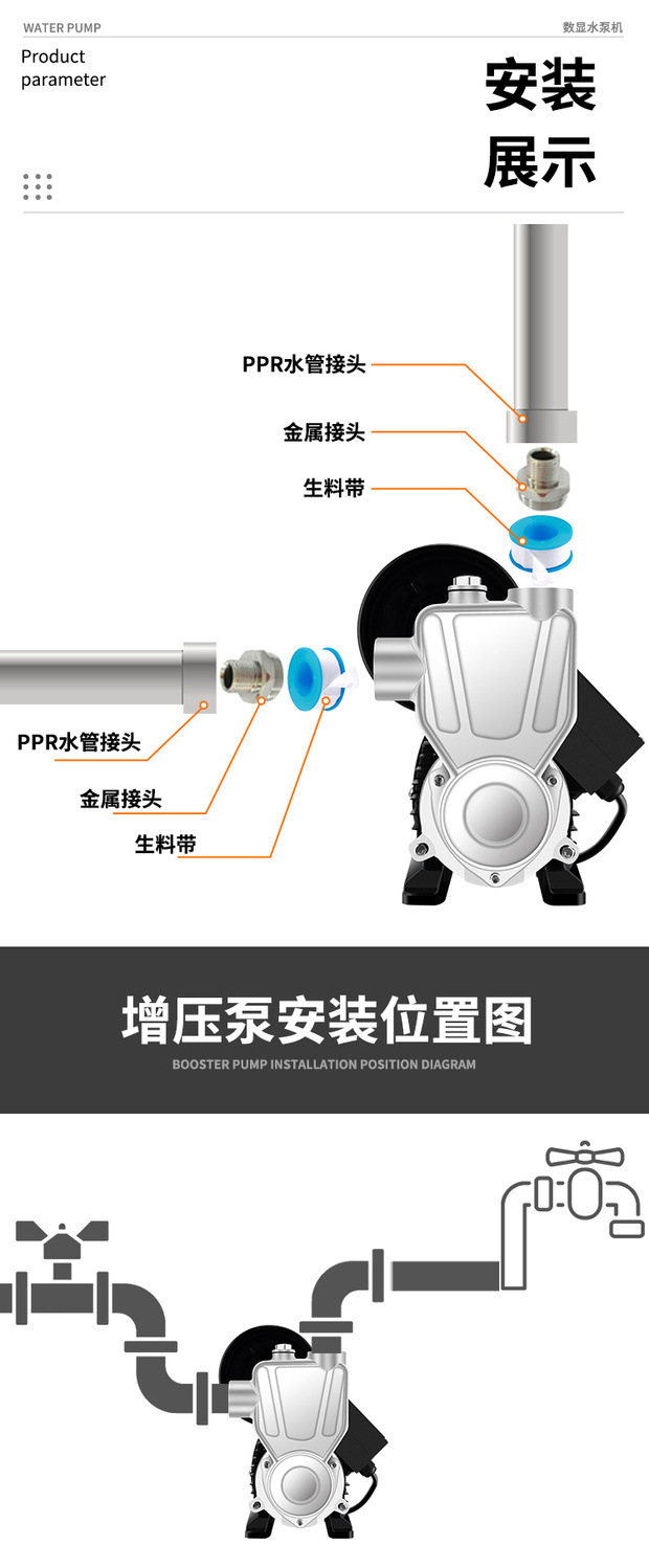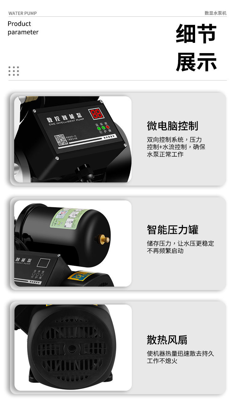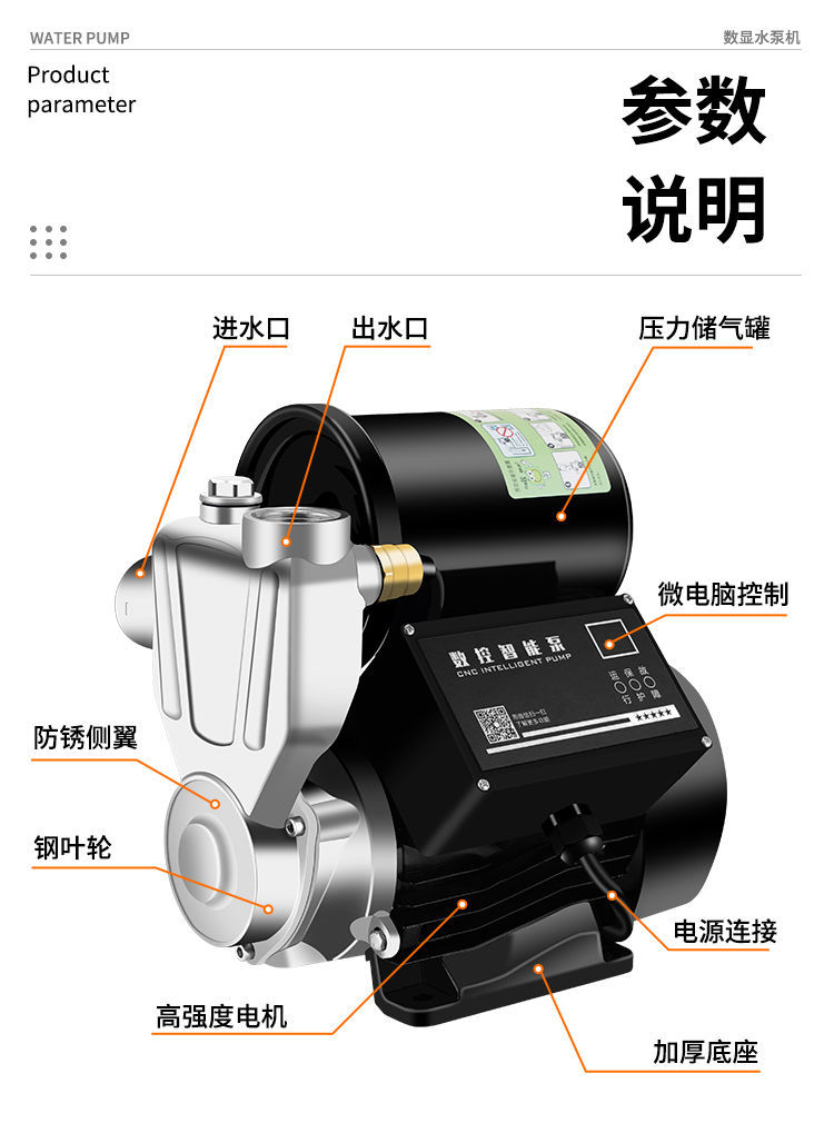 ステンレス増圧ポンプ家庭用商用全自動自吸ポンプインテリジェント防凍防錆耐高温加圧ポンプ