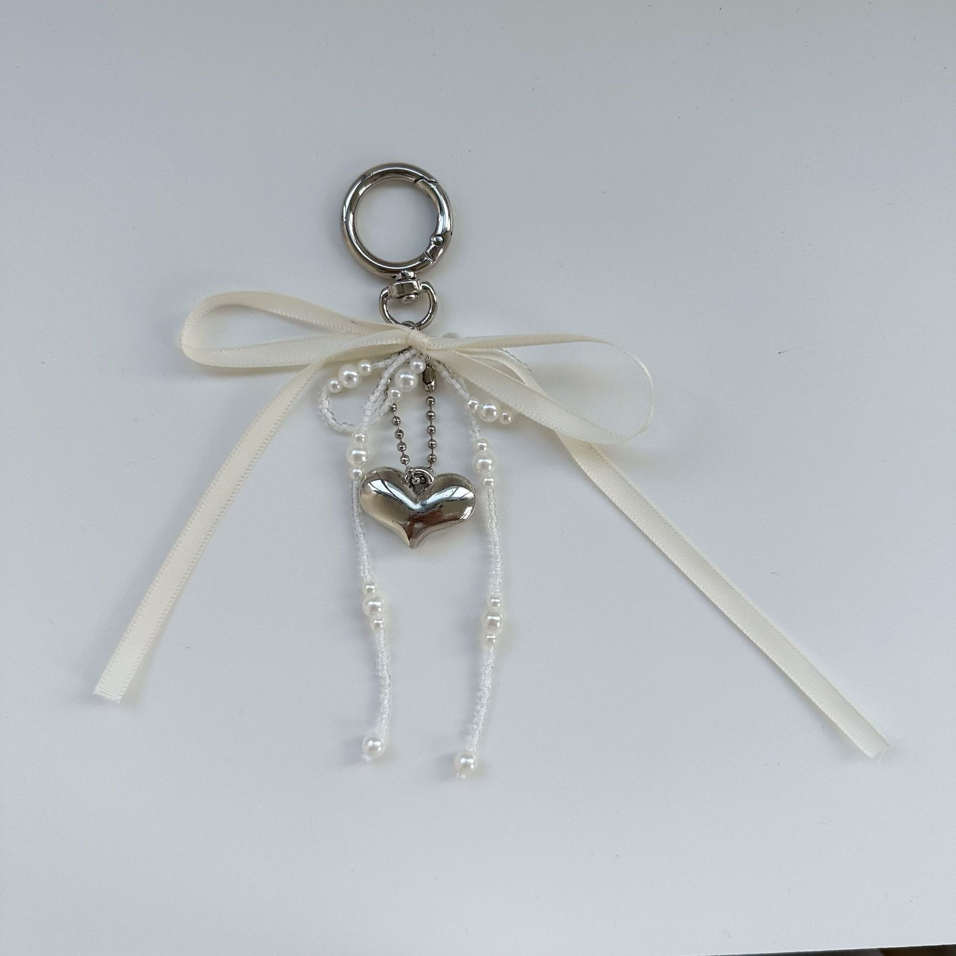 暗黑风少女心 蕾丝珍珠蝴蝶结包包挂件 ins风钥匙扣配饰爱心吊坠