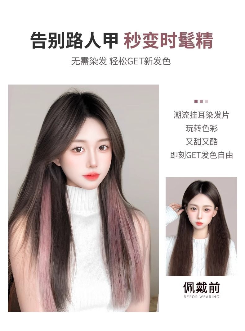耳を掛けてかつらを染めます。女性の長い髪を染めます。