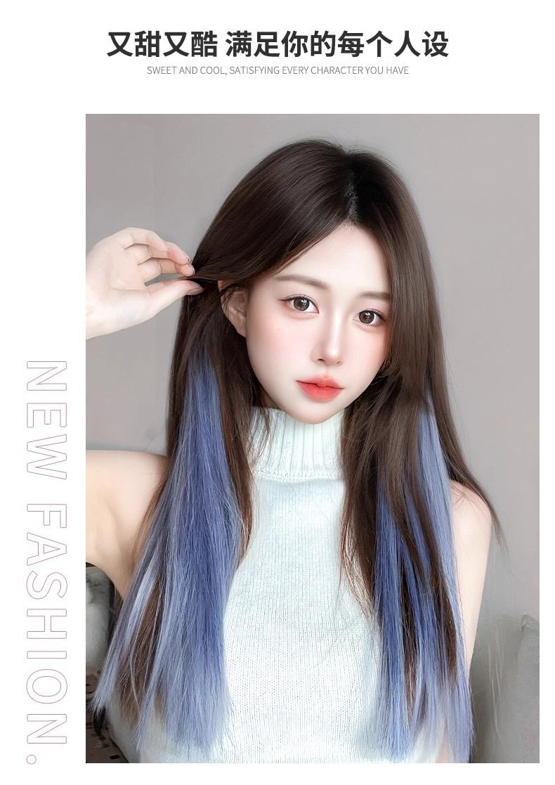 若蘭のかつらの女性の長い髪の長い巻き髪の自然な微巻の中で八の字の前髪の大きい波を分けて全体のカバー式を整えます。