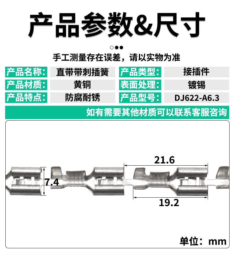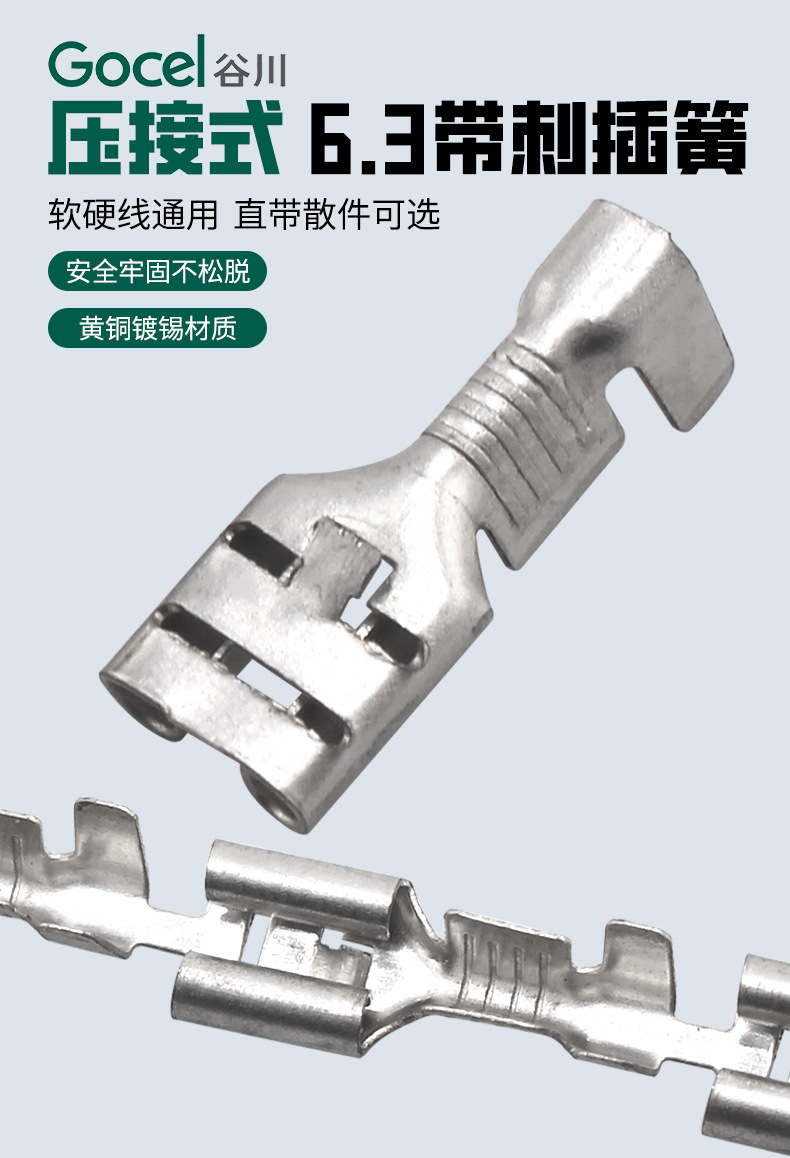 谷川6.3平板帯刺差込バネ付き250差込バネ導電性能が強い黄銅材質端子
