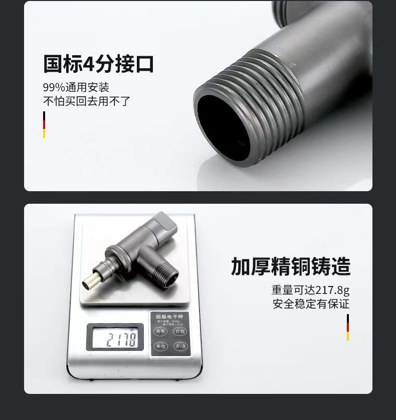 全銅三角弁冷熱通用節水弁家庭用給湯器便器スイッチ延長型増厚三角弁大