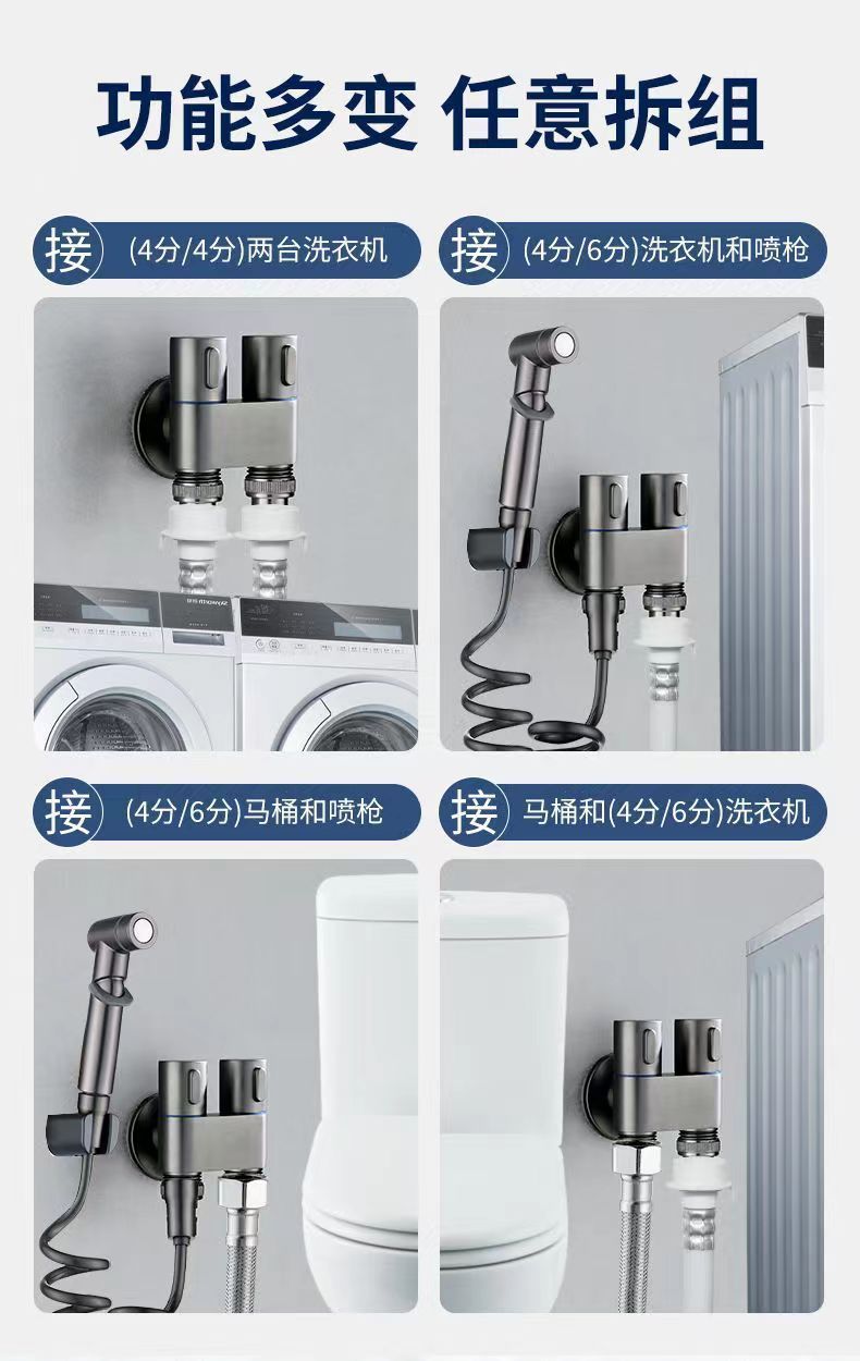 全銅一進二出洗濯機双制御止蛇口双用二出両用蛇口二頭角弁一体