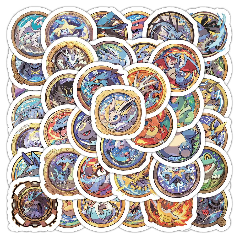 60枚の宝可夢バッジシールポケモンのポケモンの装飾コップの携帯電話のスケートボードの防水は絵を貼ります。