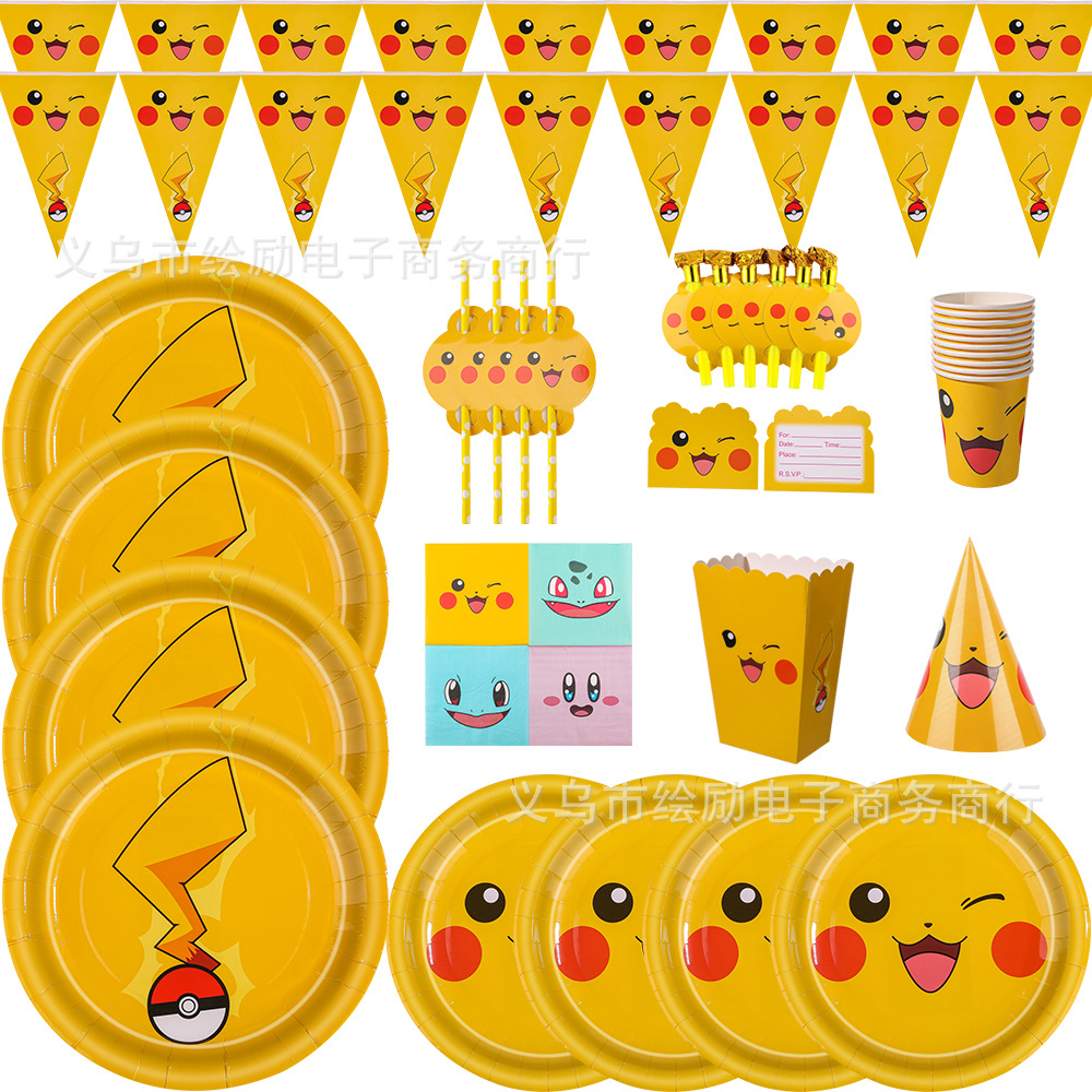 新品漫画ピカチュウ誕生日パーティー装飾道具紙皿ティッシュテーブルクロス使い捨て食器セット