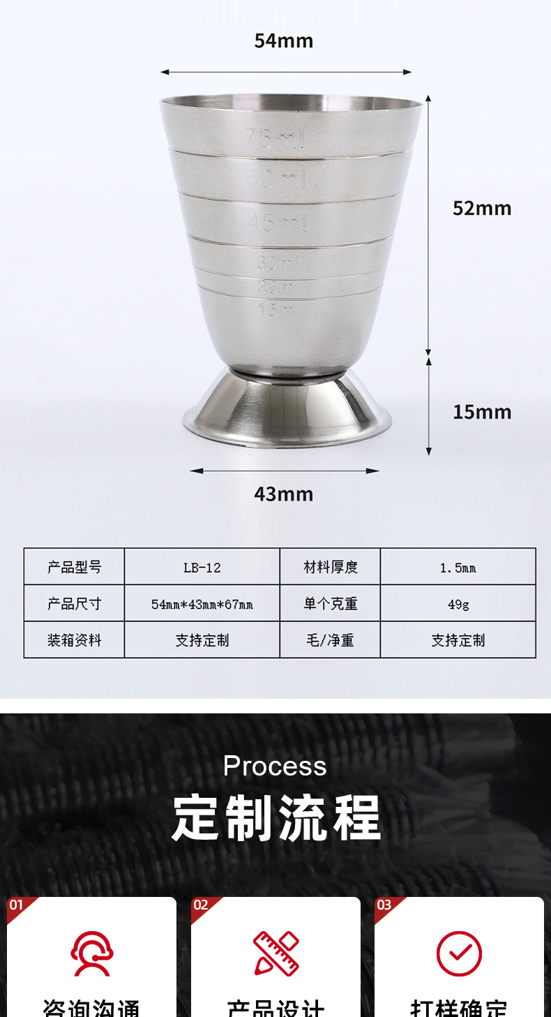 ステンレス計量カップクロスボーダー人気304ダブルヘッドバーバーバーテンダーアングスコッターカップ調整カップ印刷可能ロゴ