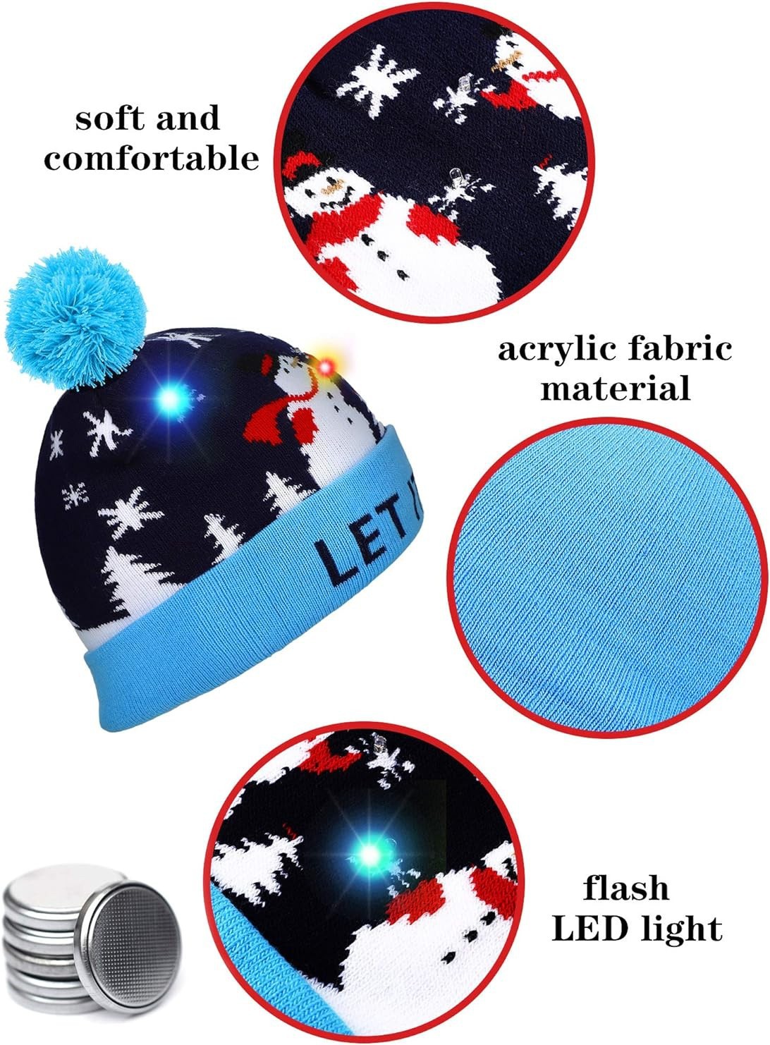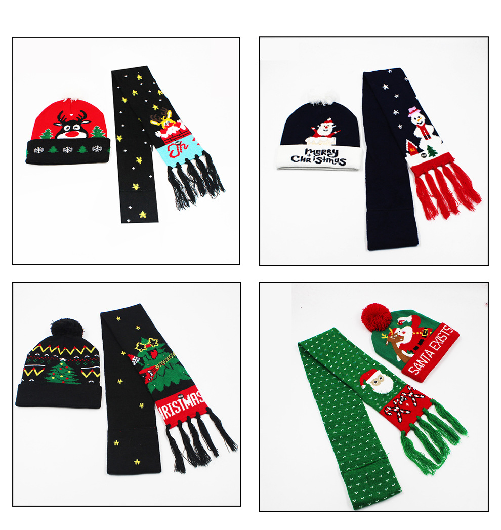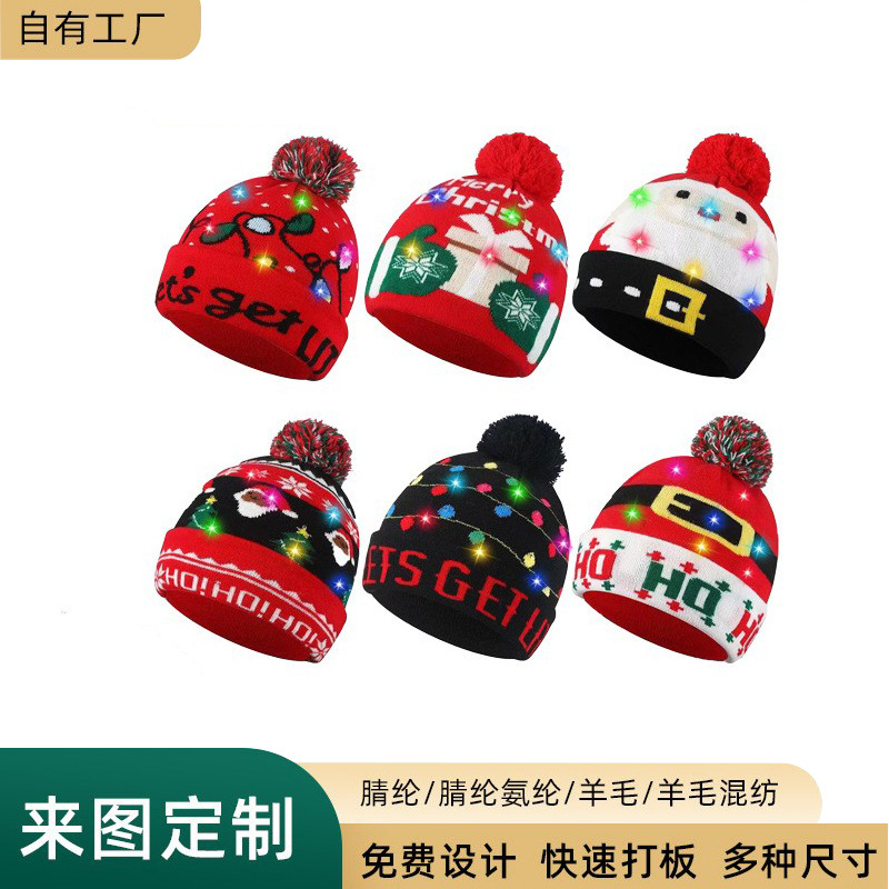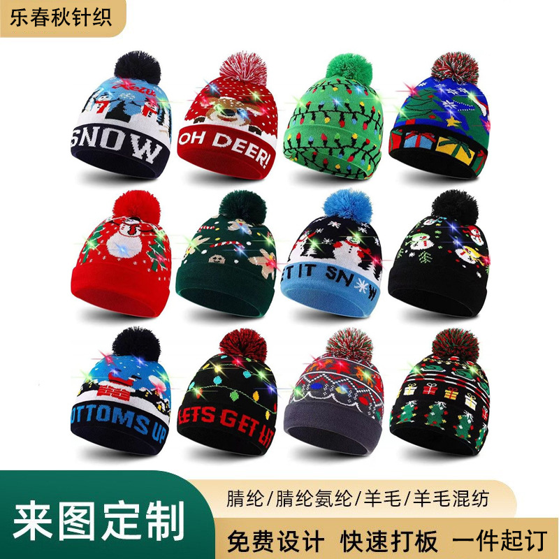 秋冬クリスマスパーティーニット帽LED発光ライトニットジャカードウール帽子クロスボーダー
