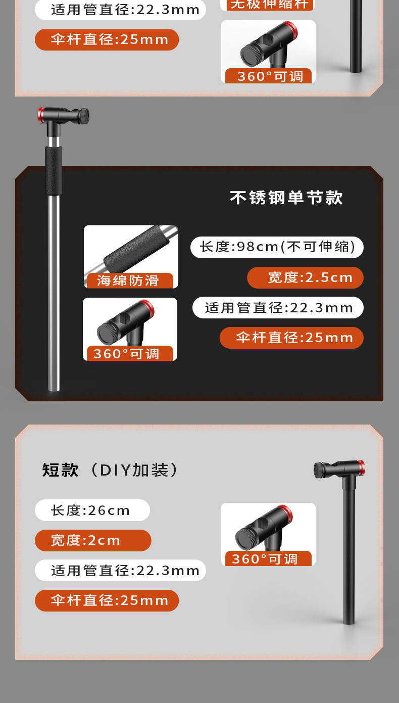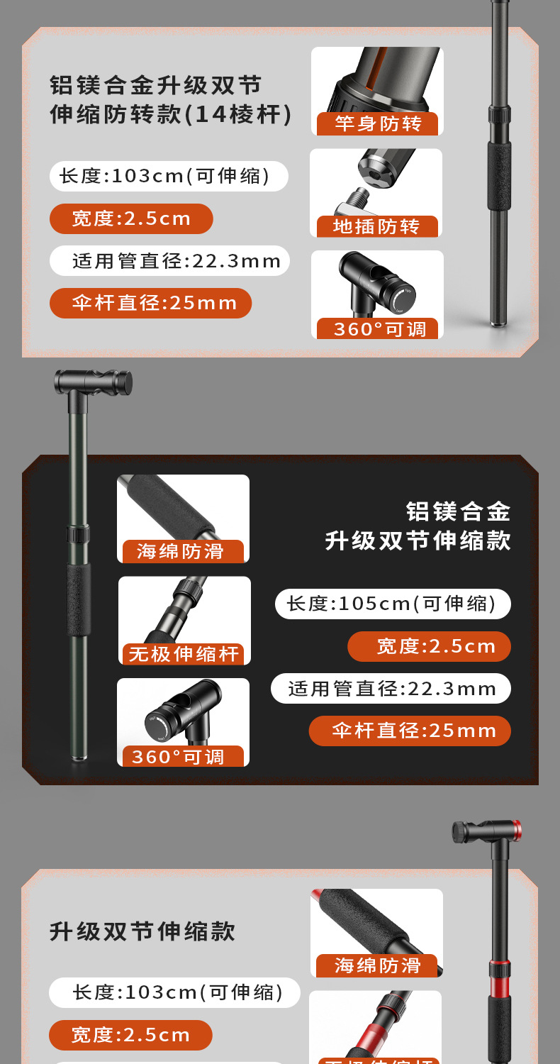 カラー 「Diyモデル」ショートタイプ (既存の釣り傘と組み合わせて使用),ステンレス「単節金」の下棒全体,アルミ合金「双節伸縮金」のアップグレード強化,精品マグネシウムアルミニウム合金「双節伸縮金」のアップグレード強化,14稜精品マグネシウムアルミニウム合金「回転防止 + 双節伸縮金」のアップグレード強化