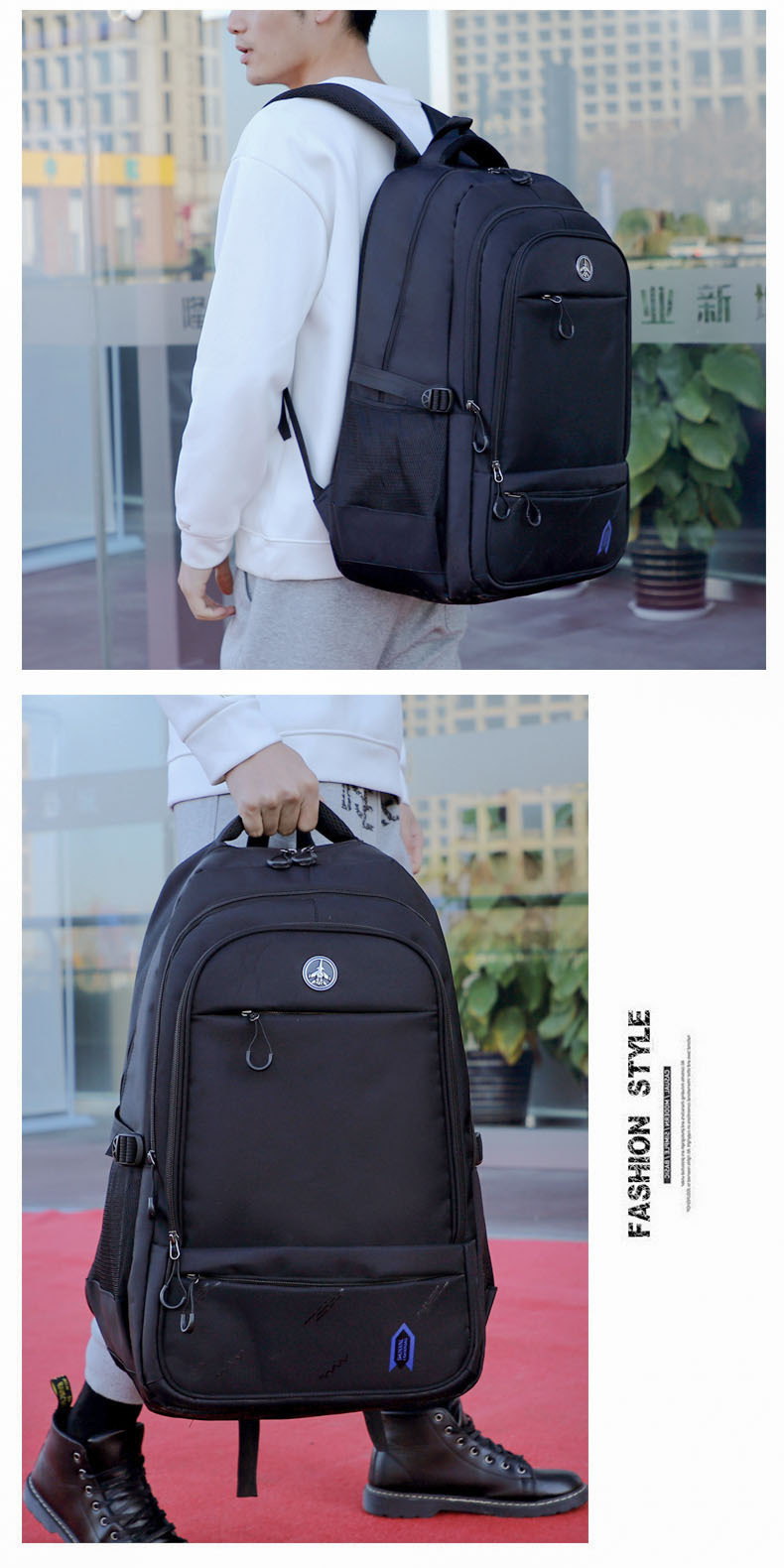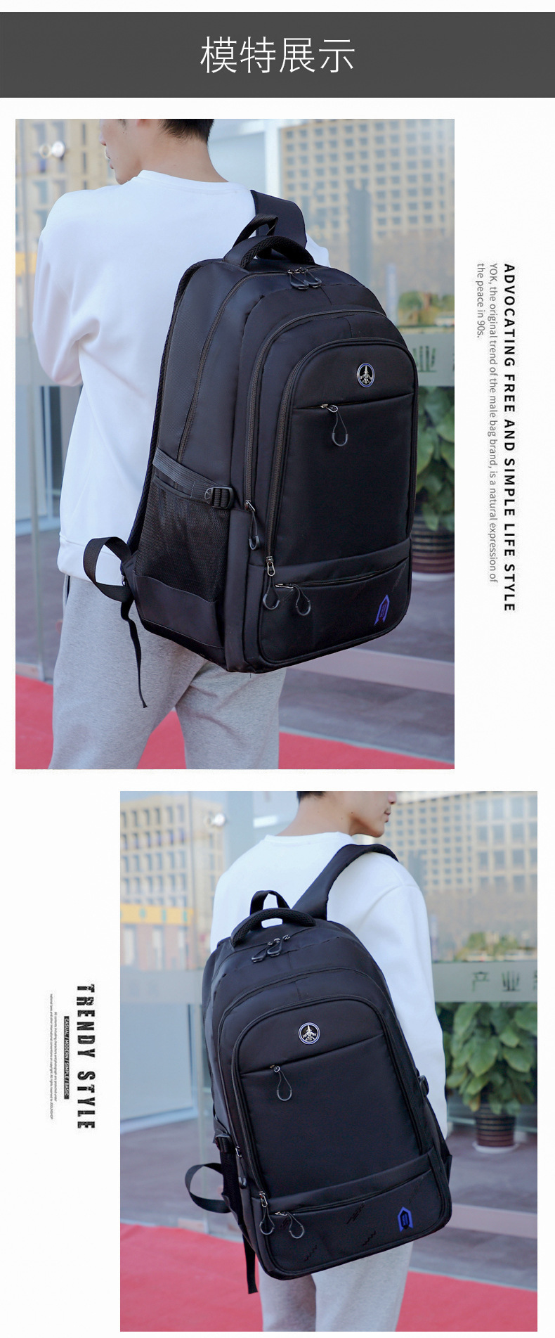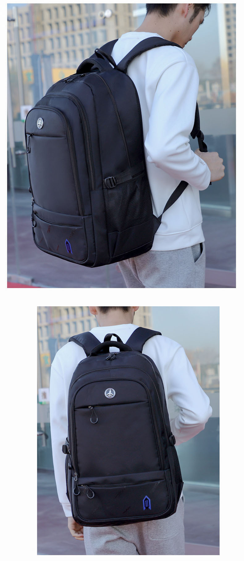 ロゴ印刷可能大容量リュックサック男性黒色耐摩耗性耐久性防水ビジネス出張旅行リュックサック卸売り