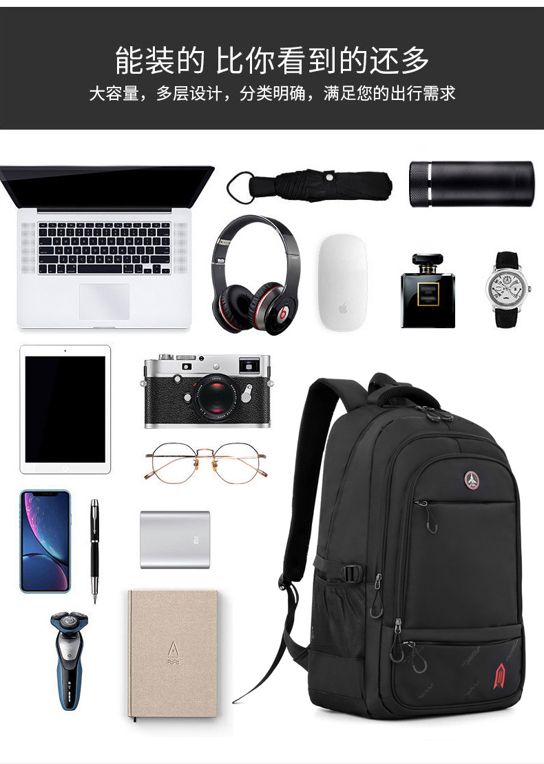 国境を越えてロゴを印刷できるバックパック男大容量防水旅行出張ビジネスパソコン旅行ランドセル男