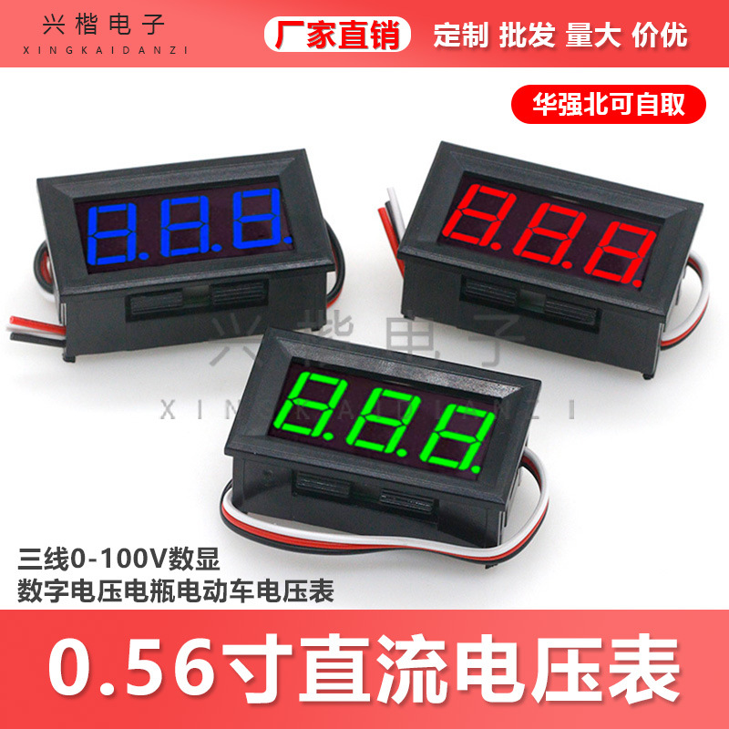 二线直流数显电压表头0.56寸LED数字电压表DC5V-120V