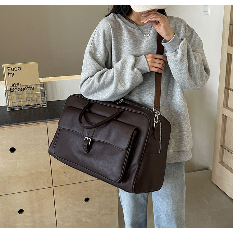 短距離大容量搭乗トラベルバッグPUレザー軽量ポータブルスポーツフィットネスバッグハイエンドカジュアル通勤ハンドバッグ