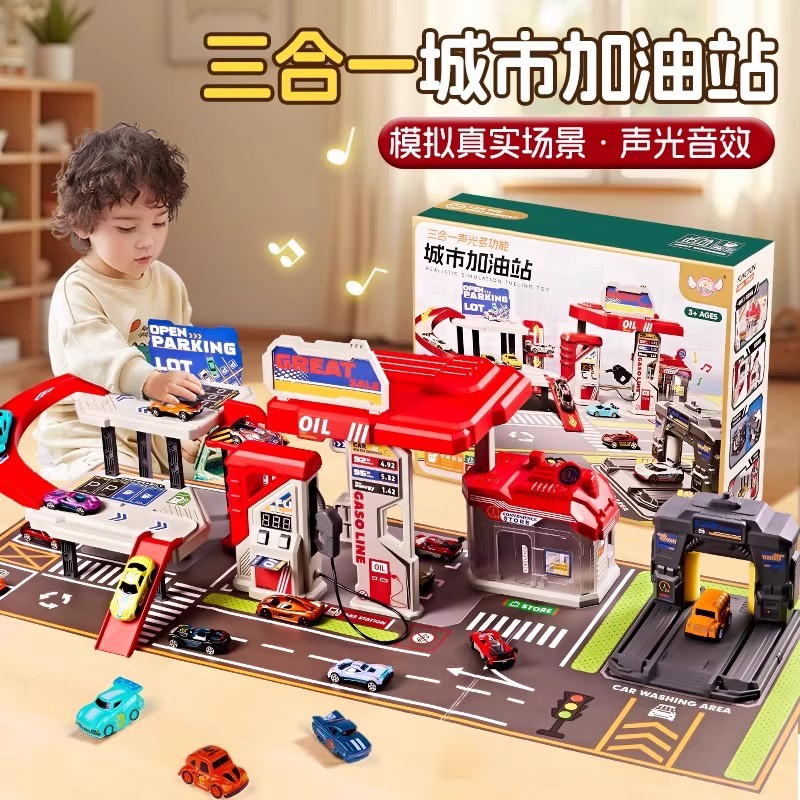 新六一児童大ガソリンスタンド玩具自動車駐車場模擬車庫模型セット3歳から9歳