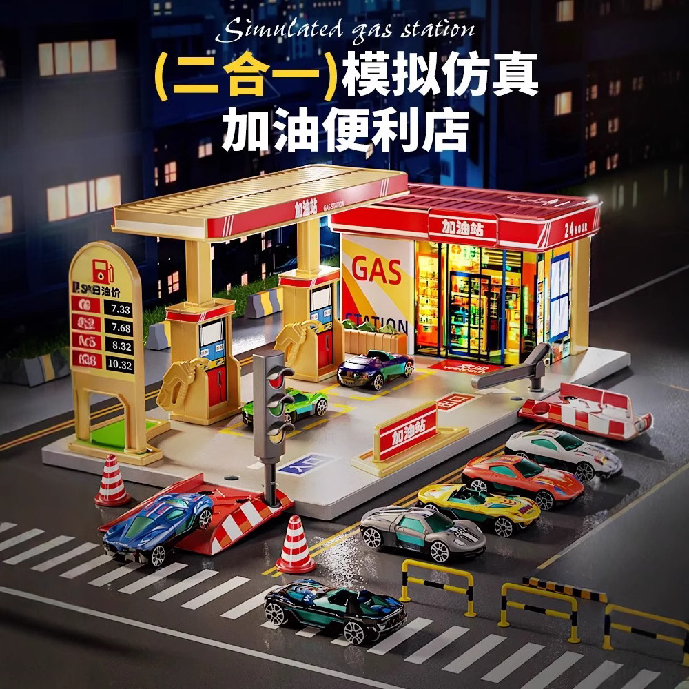 子供用ガソリンスタンドおもちゃシミュレーション合金車コンビニモデル男の子3から6歳の赤ちゃん教育ギフト