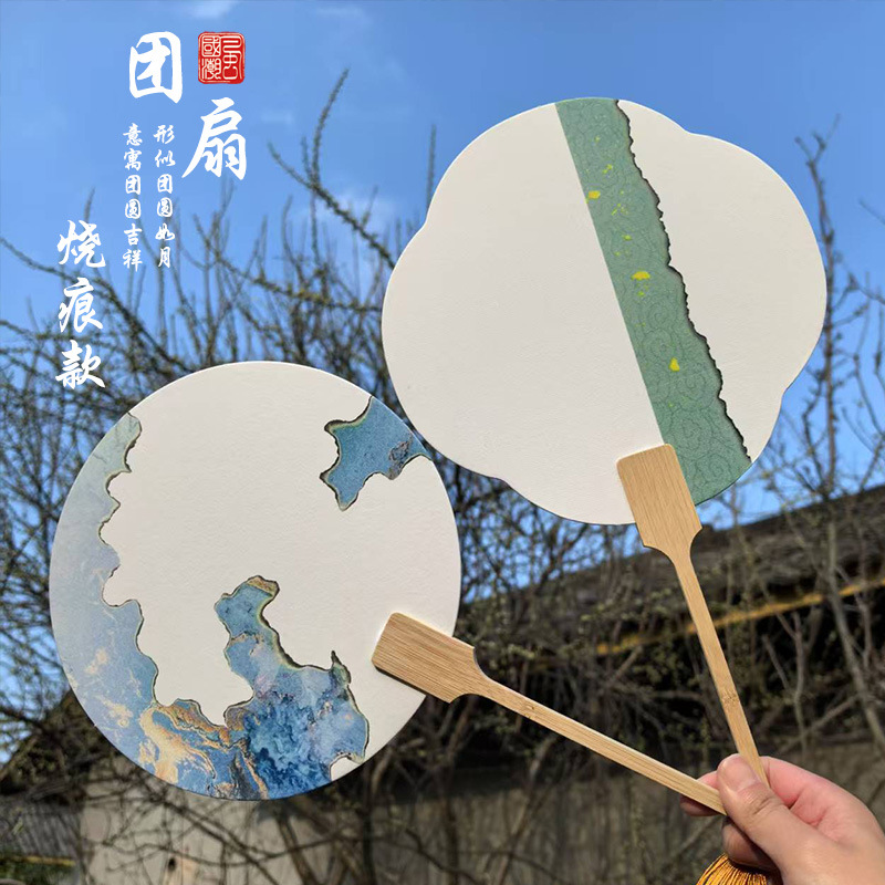宣紙国風新焼痕団扇書道毛筆字diy観光地区の写真を撮って、国風団扇を並べます。