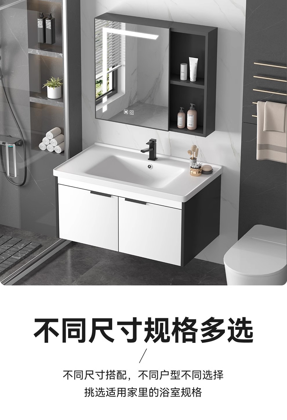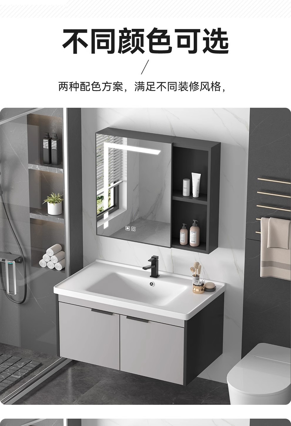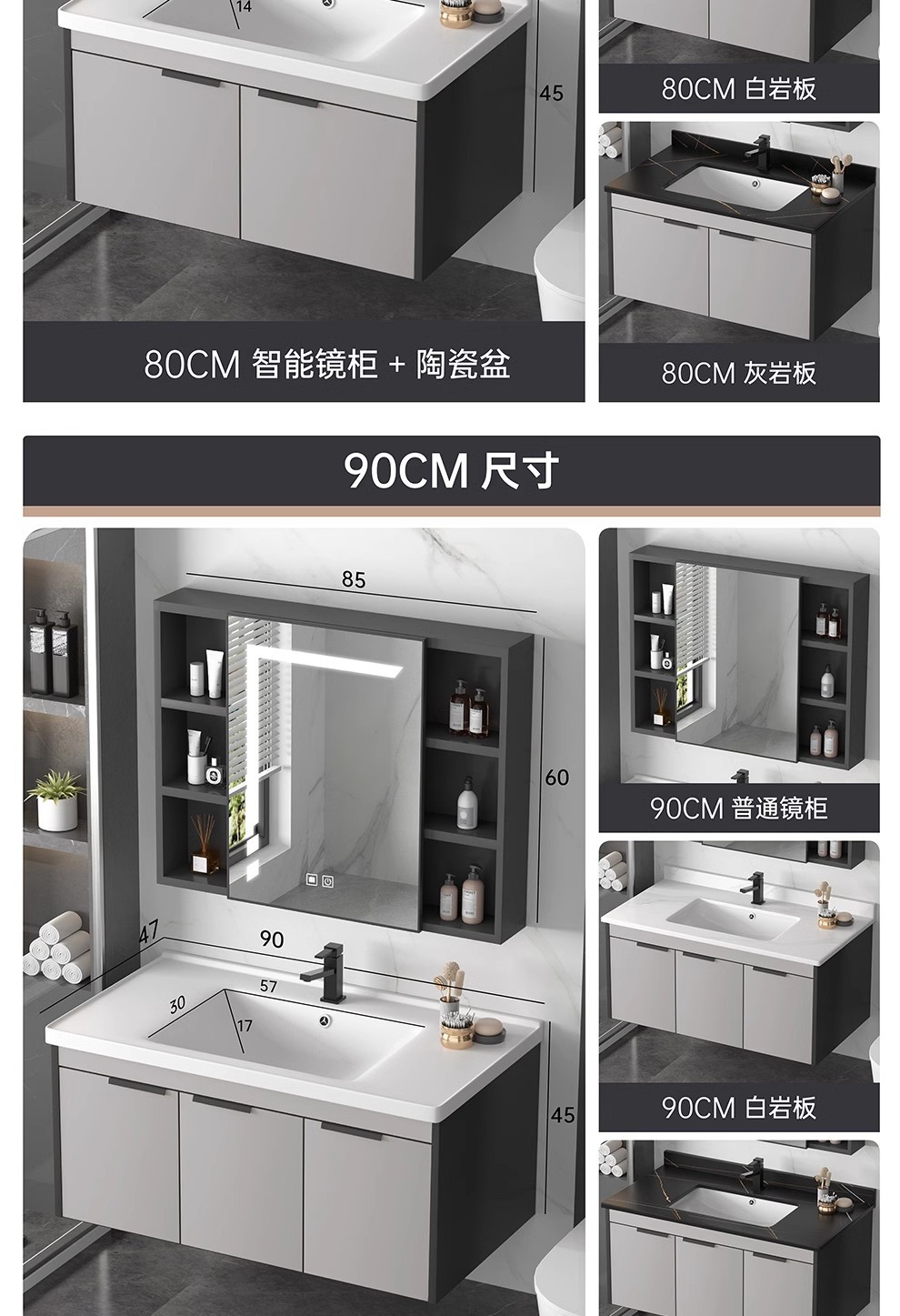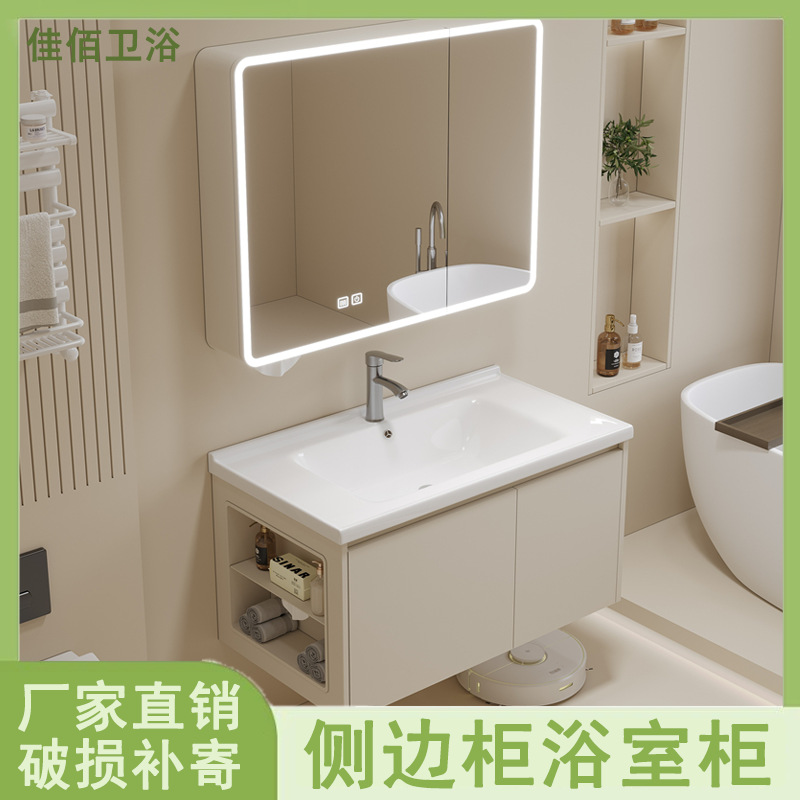 奶油风加厚蜂窝铝侧边收纳浴室柜陶瓷一体盆组合家用卫浴洗漱台盆