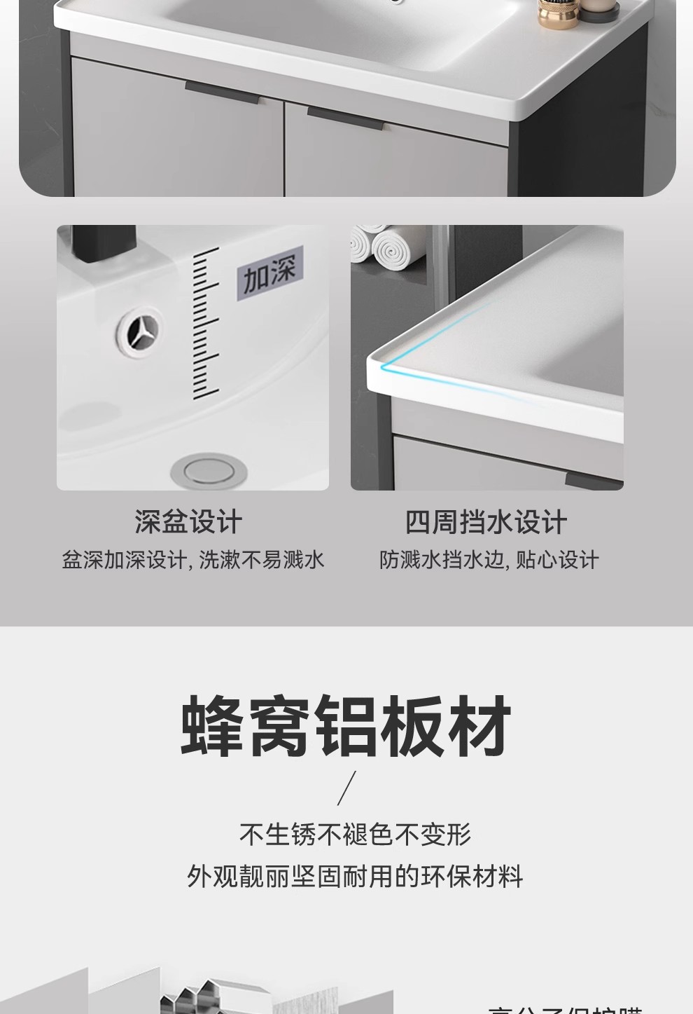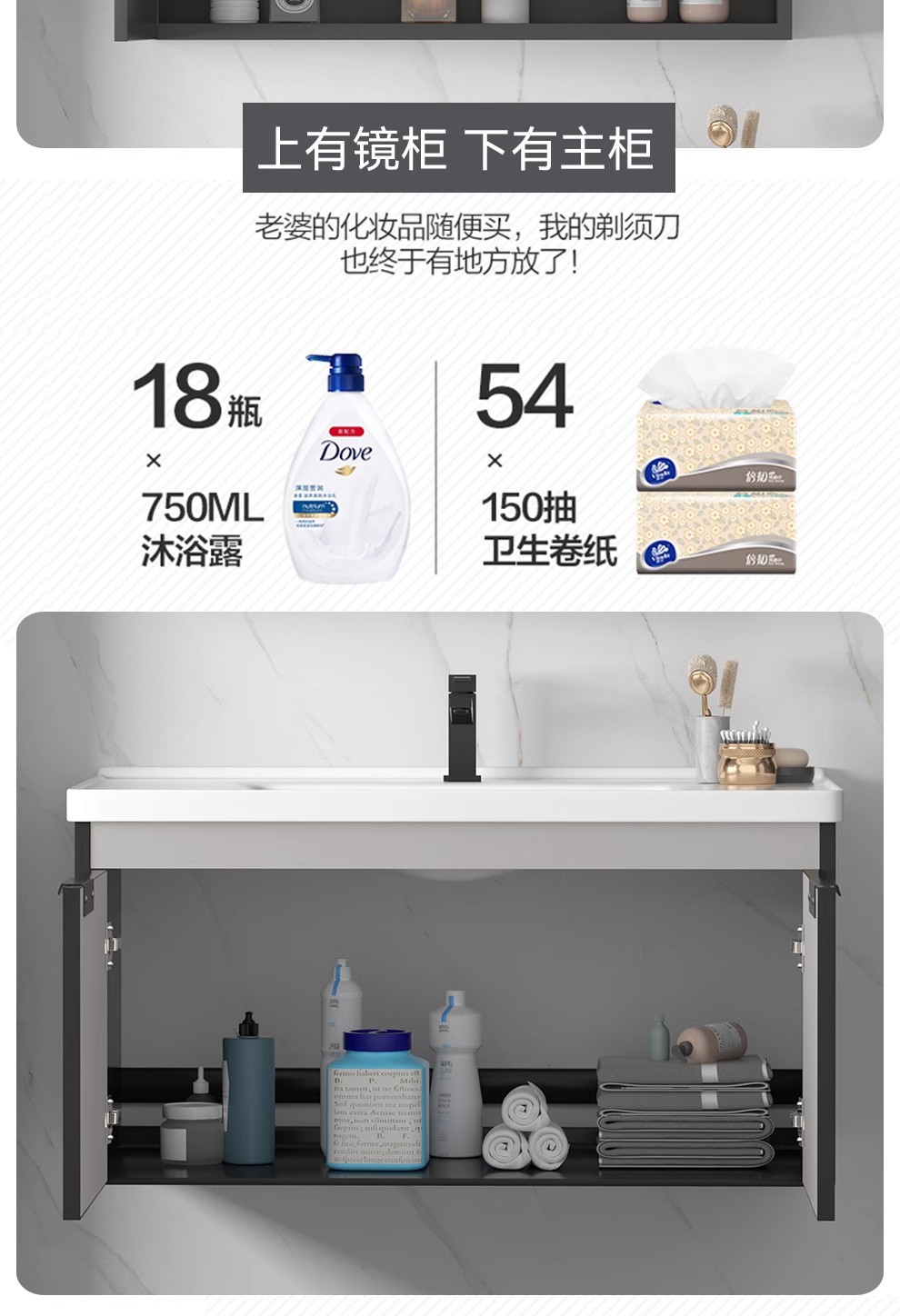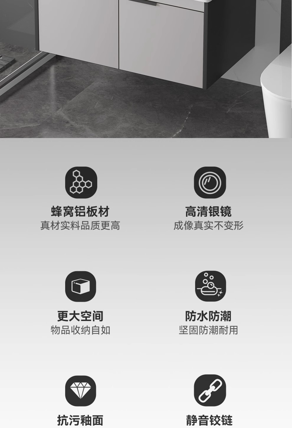 奶油风加厚蜂窝铝侧边收纳浴室柜陶瓷一体盆组合家用卫浴洗漱台盆