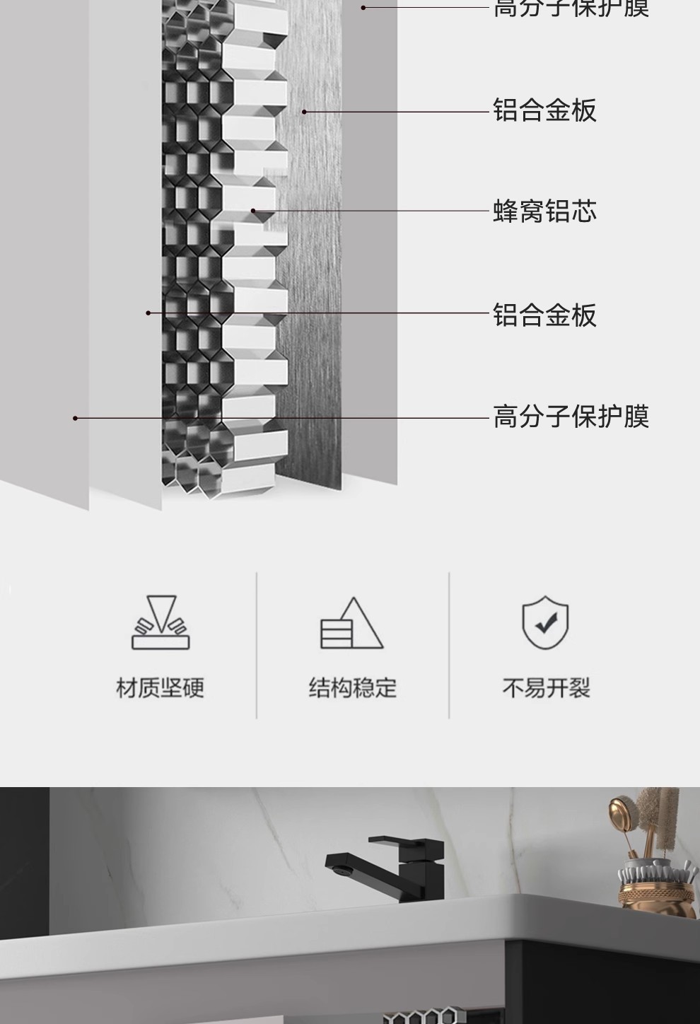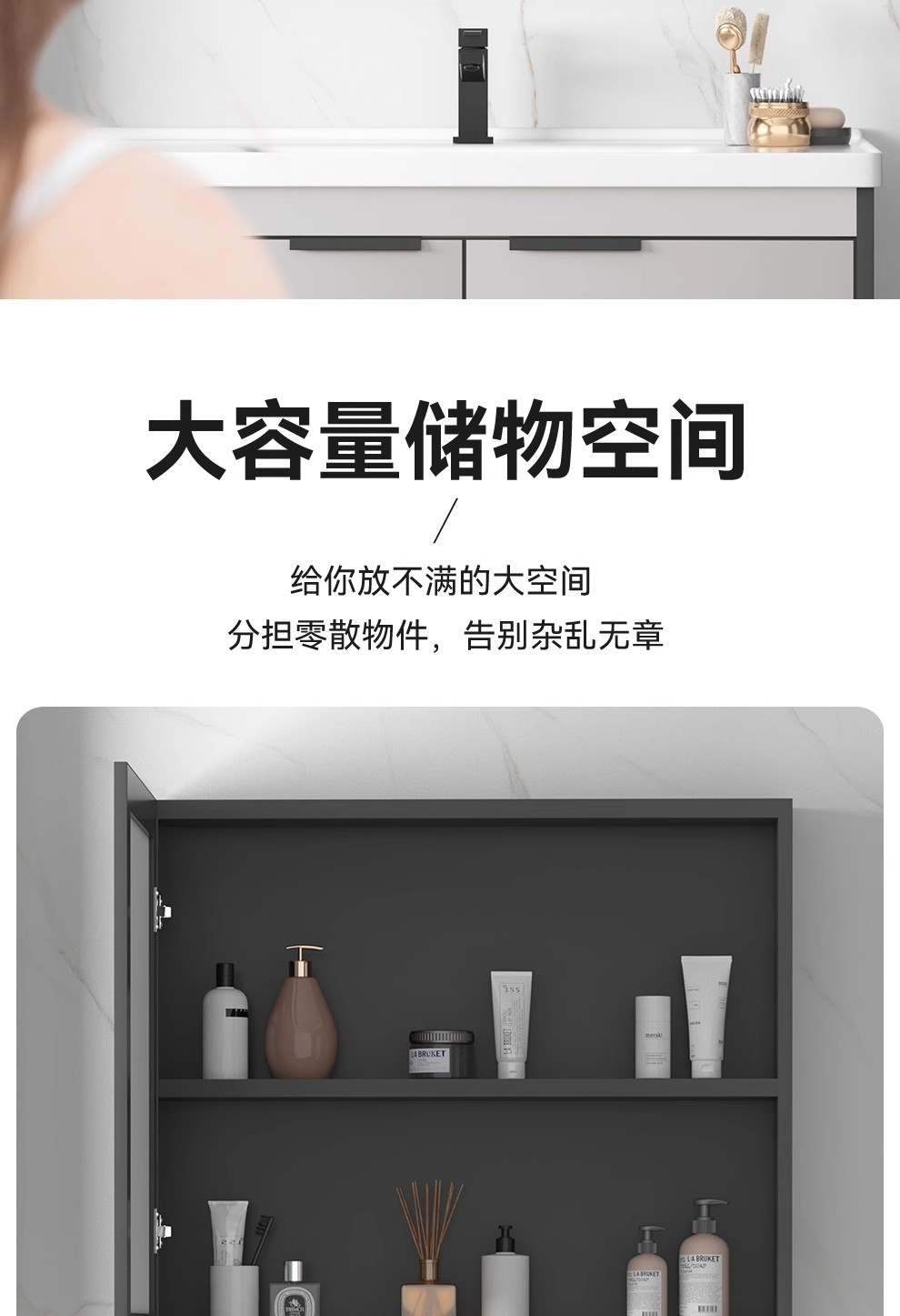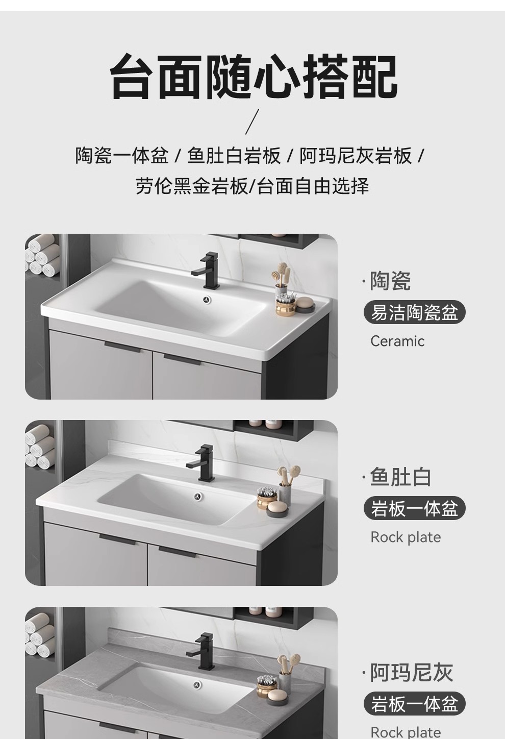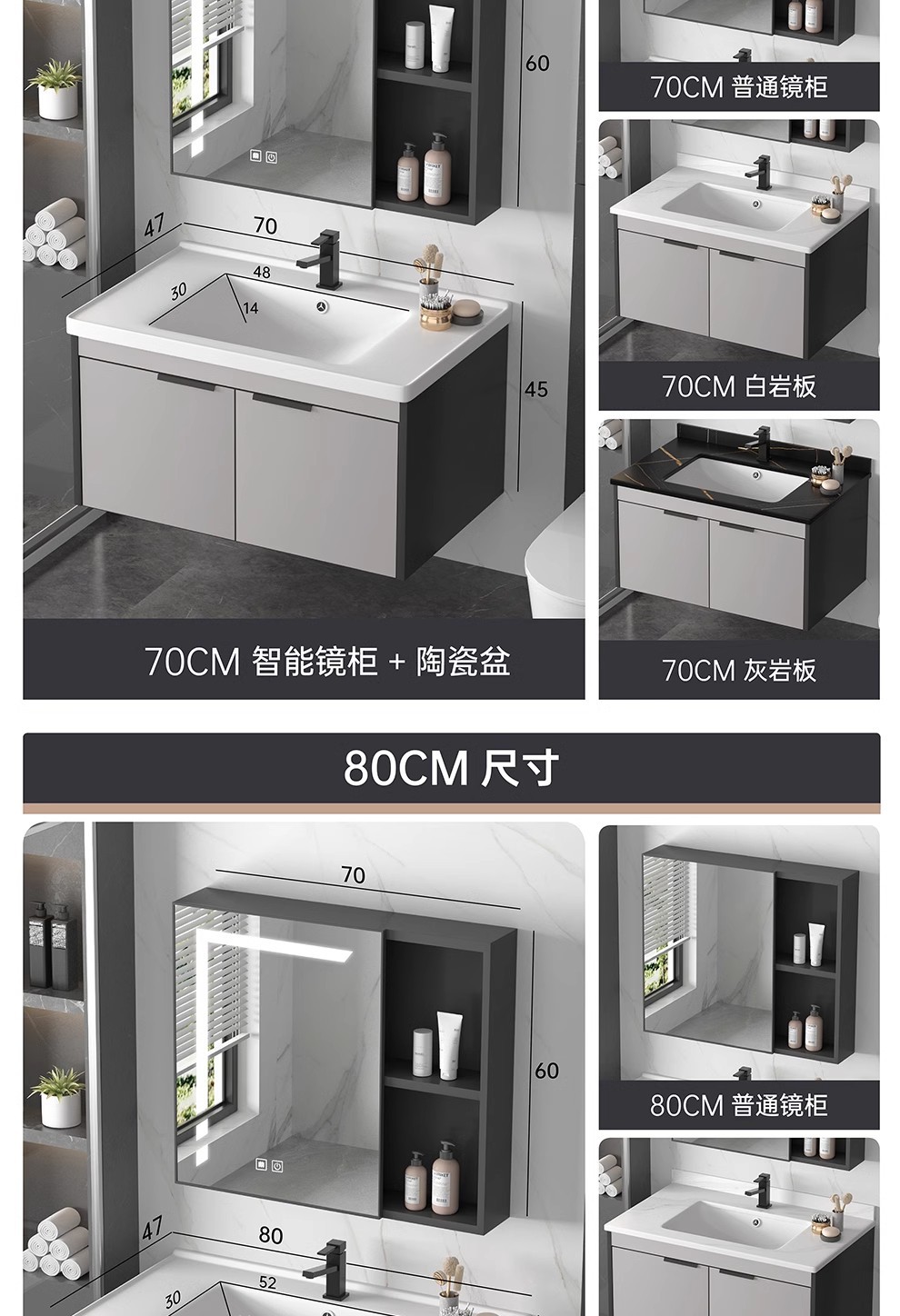 奶油风加厚蜂窝铝侧边收纳浴室柜陶瓷一体盆组合家用卫浴洗漱台盆