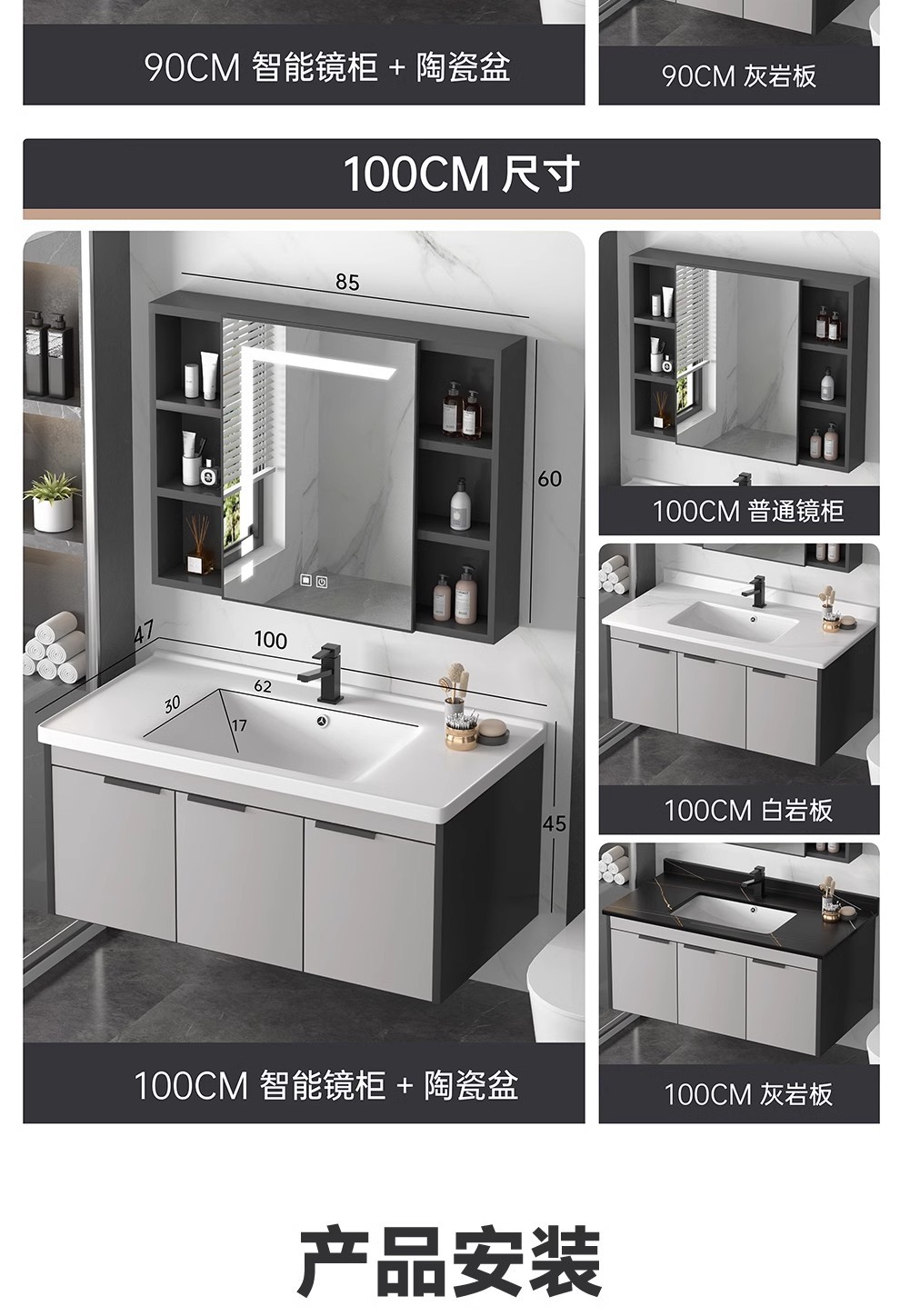 岩板陶磁器盆現代シンプル浴室キャビネットセットトイレ洗面洗面台洗面台鏡キャビネットセット