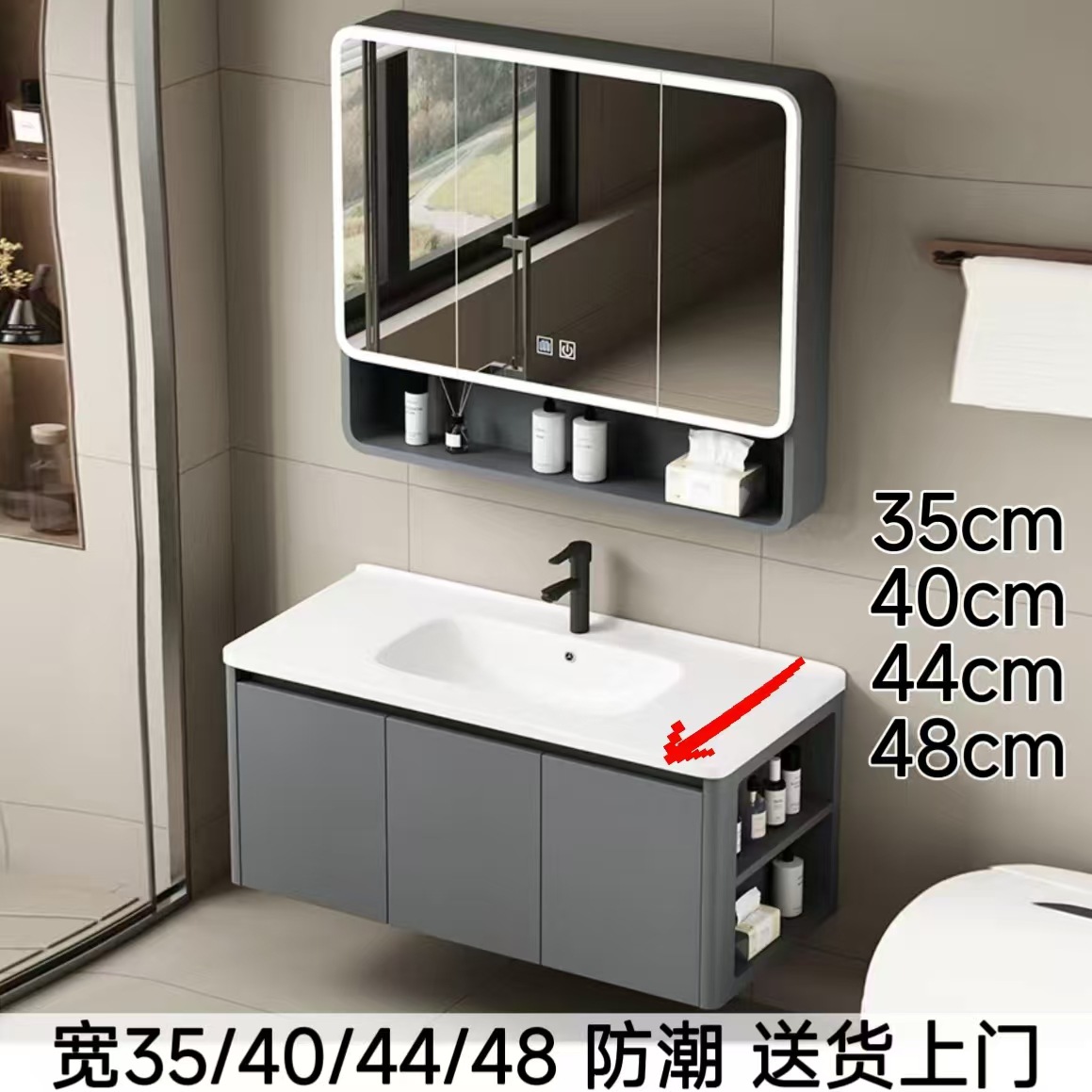 超窄40cm宽浴室柜组合侧边收纳陶瓷一体盆35cm洗漱台45进深洗手盆