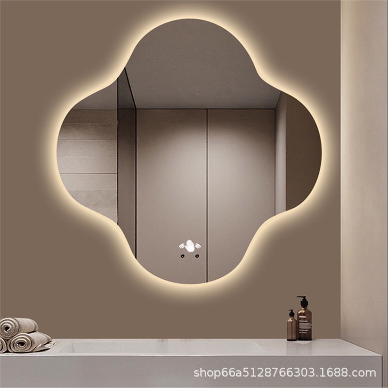 四つ葉のクローバー形状スマートバスルームミラー特殊形状アート LED 曇り止めミラーフレームレス壁掛けバスルームバニティミラー