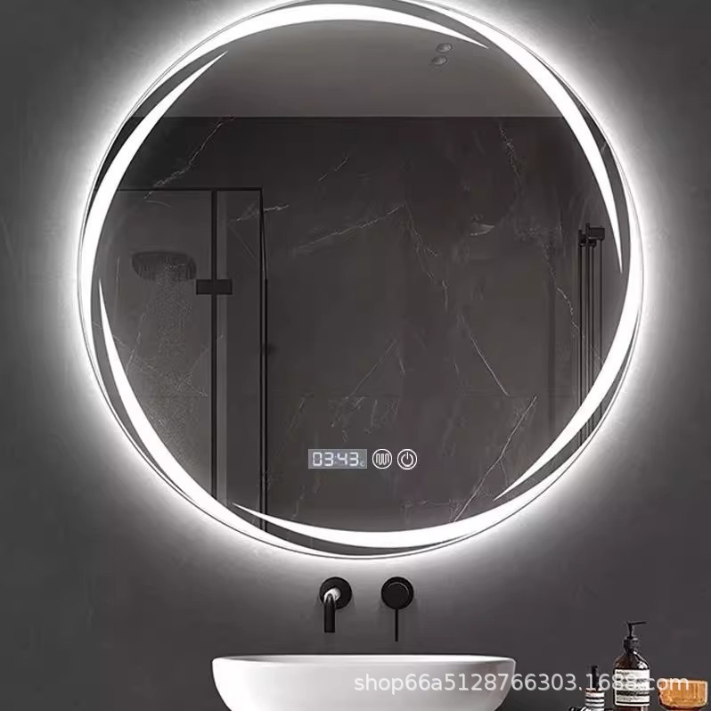 スマート円鏡枠付きledランプ浴室鏡防曇タッチパネルトイレ化粧浴室鏡穴なし壁掛け