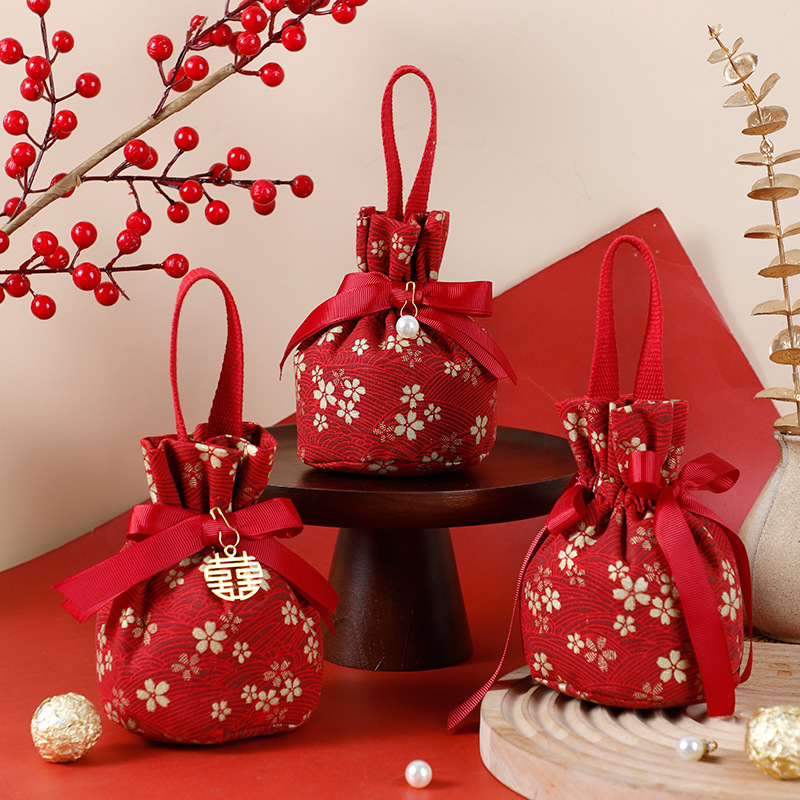 結婚式のお菓子箱布袋キャンディ包装袋盤扣結婚式の盆栽中国風レトロなお祝い