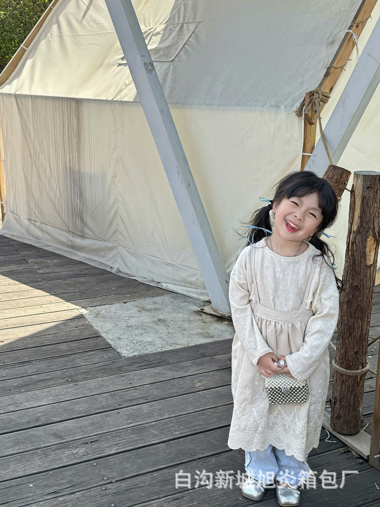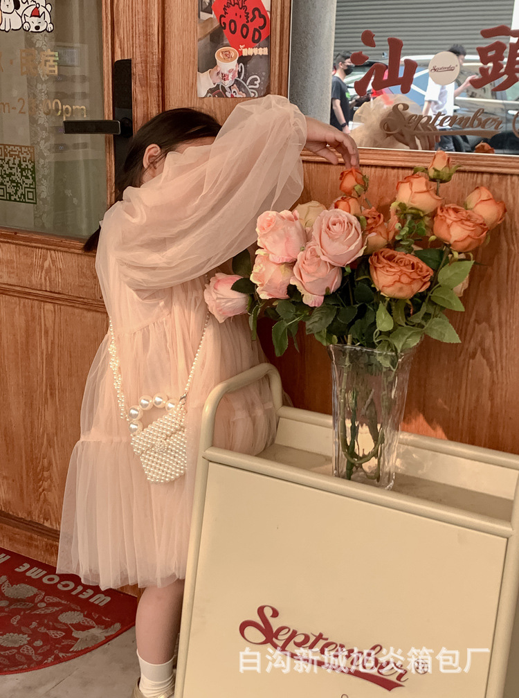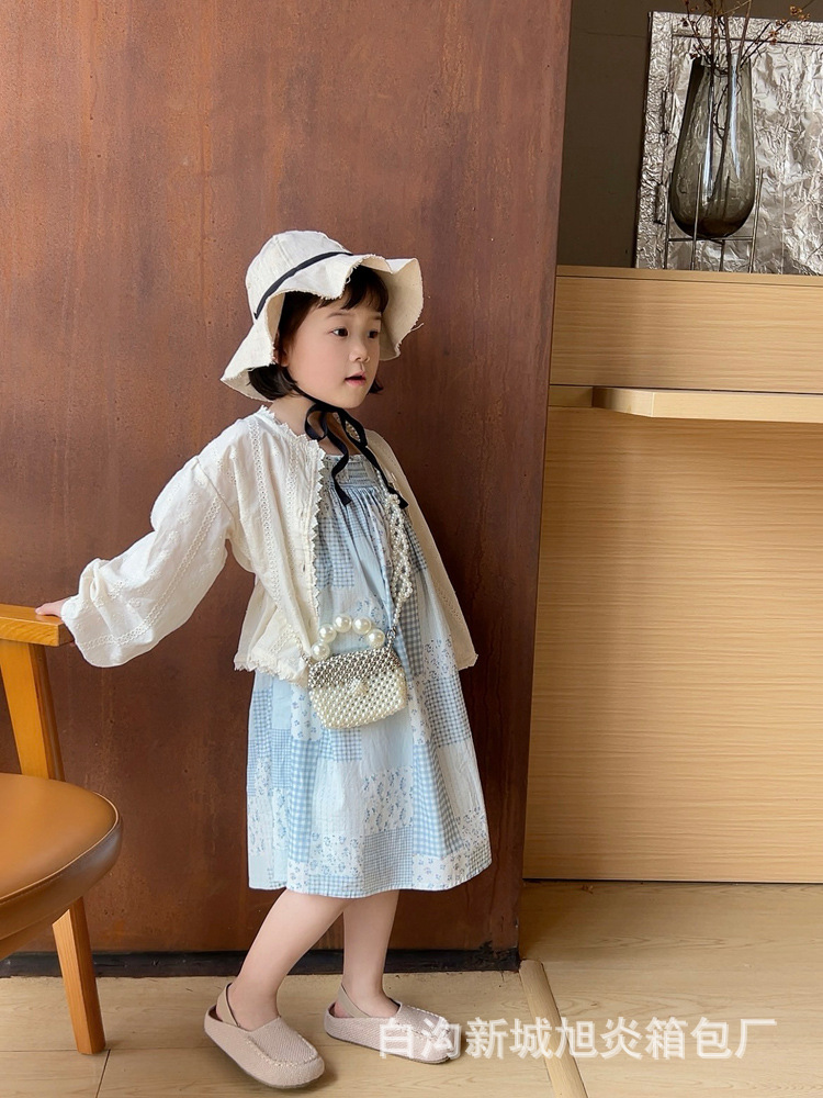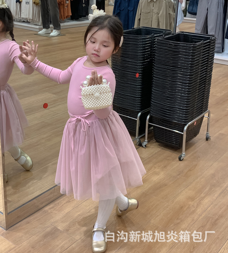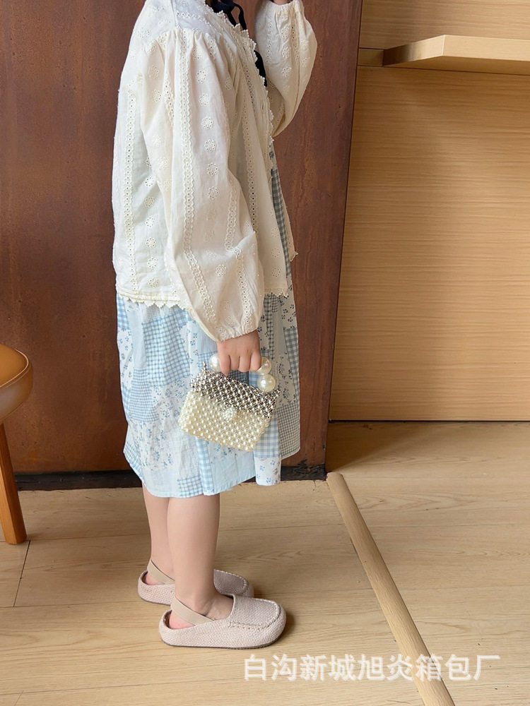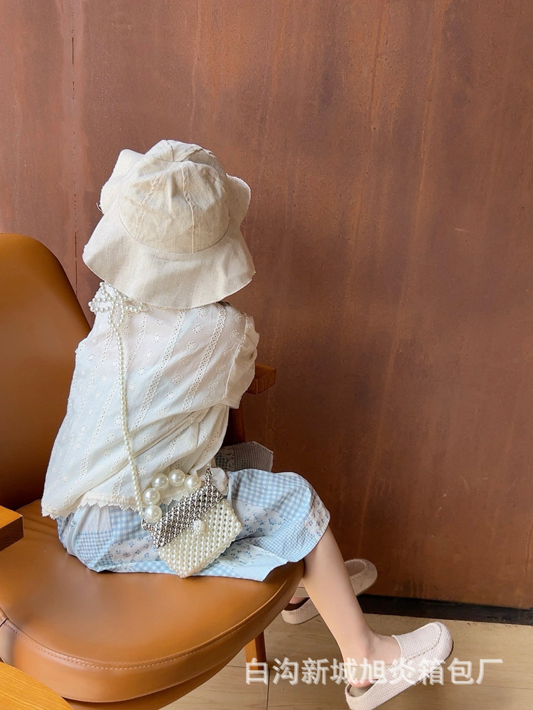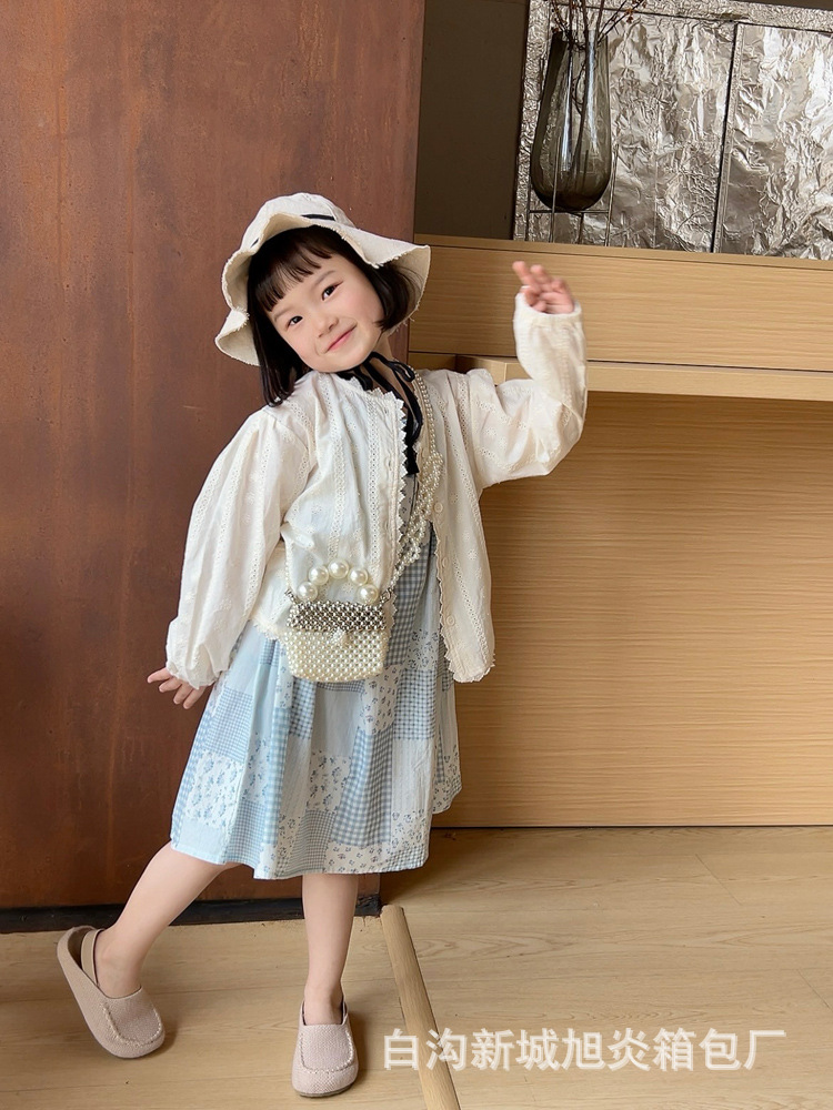 子供の夏の真珠の小さいリュックサックの2024洋風の小さい方のカバンのかわいい女の子の斜め掛けのショルダーバッグのビーズの手提げの小さいカバン