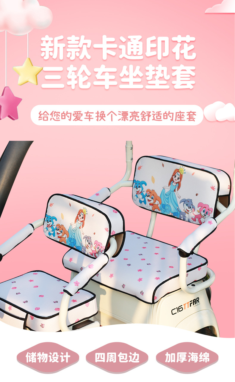 三輪車シートクッションアイス漫画電気自動車シートカバー四季シートカバー金彭愛三輪車シートクッション