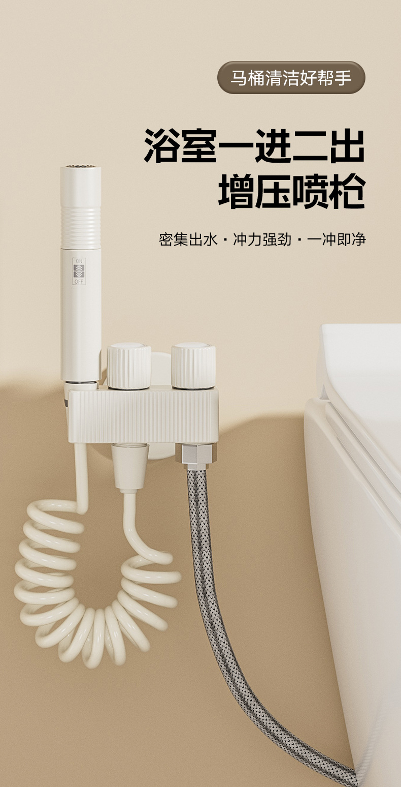 马桶伴侣卫生间冲洗增压喷枪一进二出全铜家用角阀浴室妇洗器喷头
