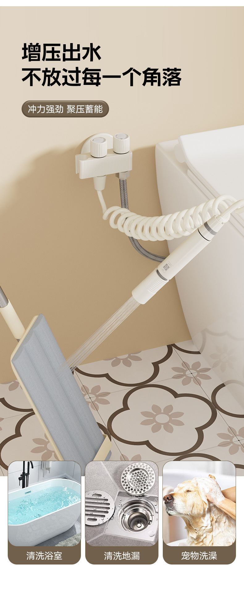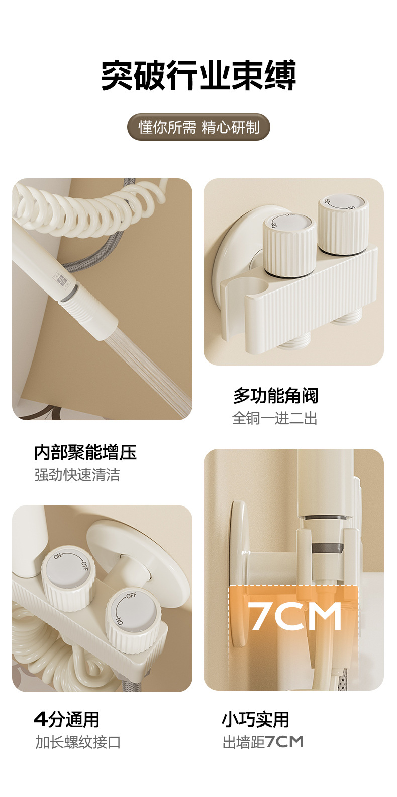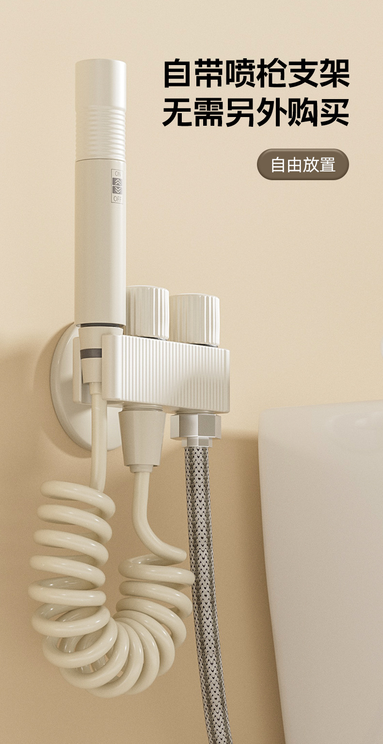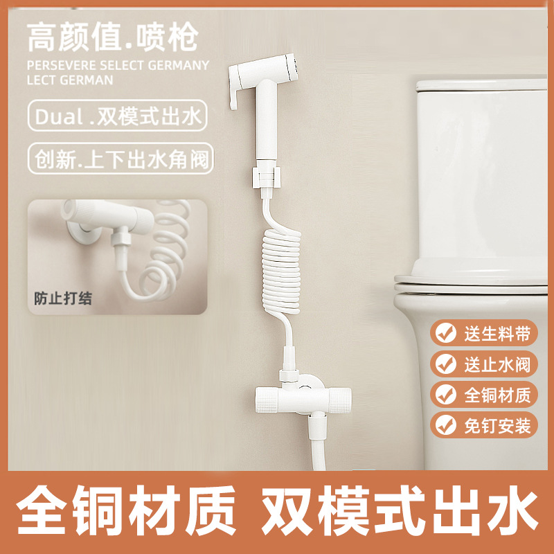 白色全铜马桶伴侣双模式奶油风卫生间高压冲洗喷枪增压水龙头