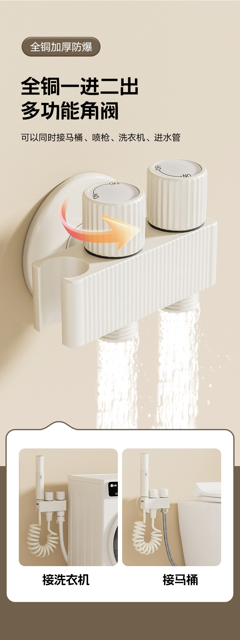奶油白一进三出角阀马桶角阀分水器水阀马桶伴侣套餐洗衣机水龙头