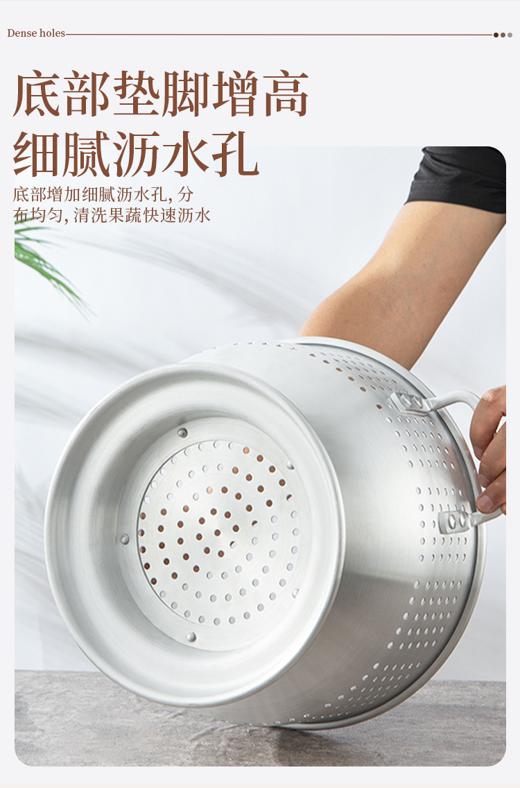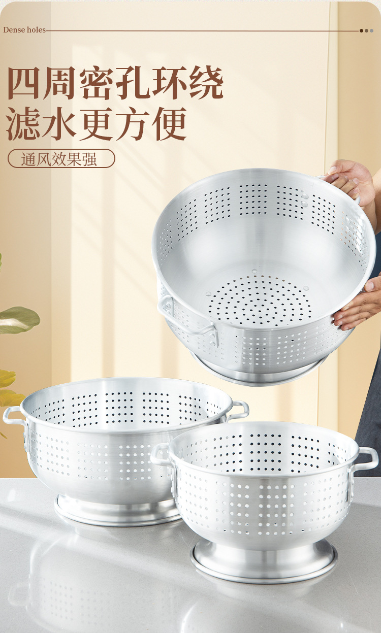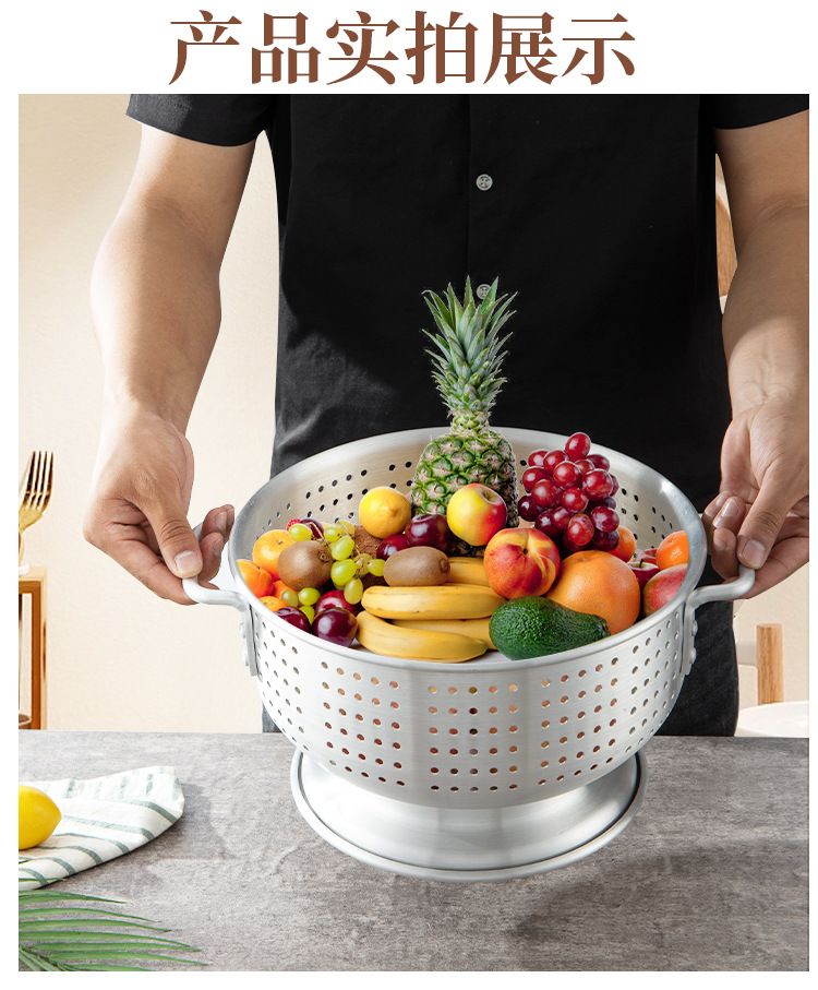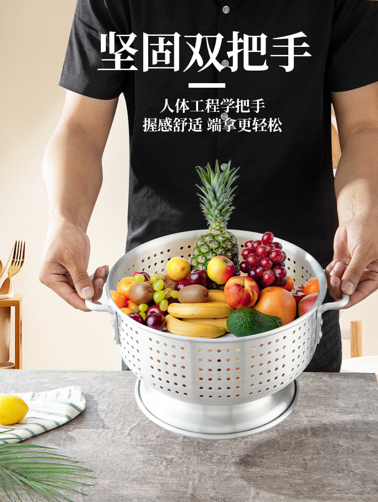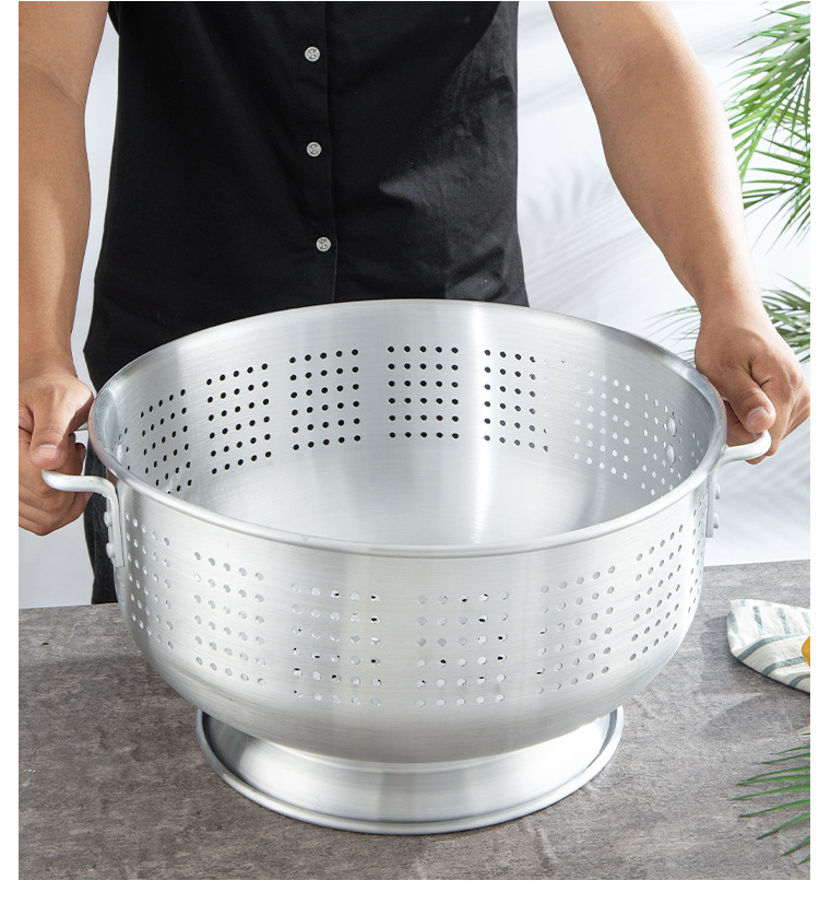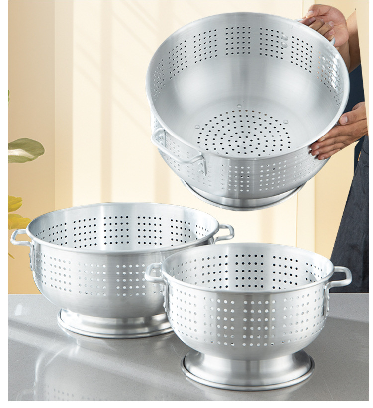 輸出アルミ製の米を洗うふるいは足の両耳の果物のたらいを持っています。