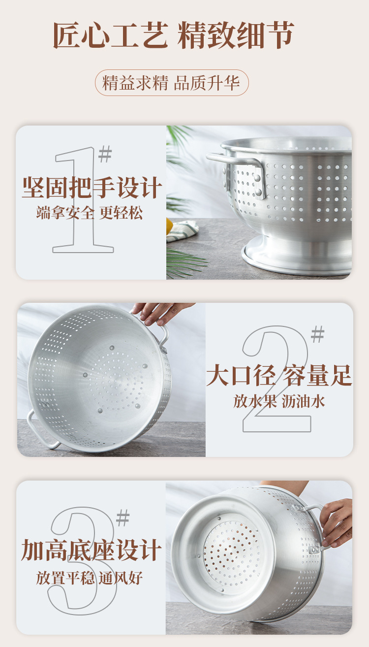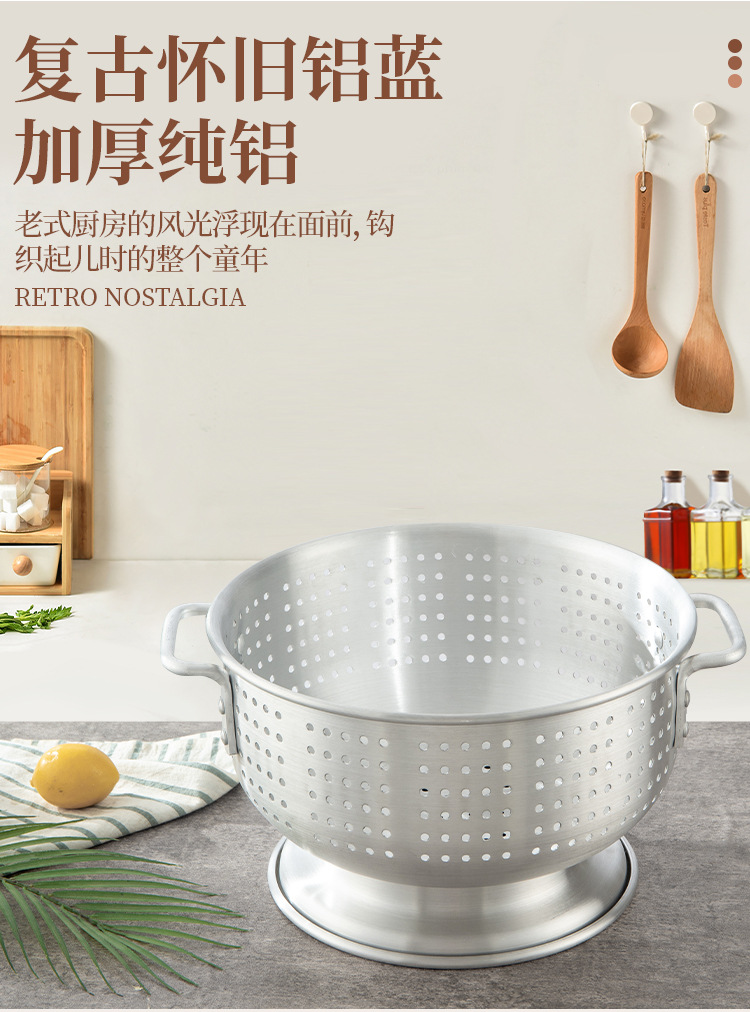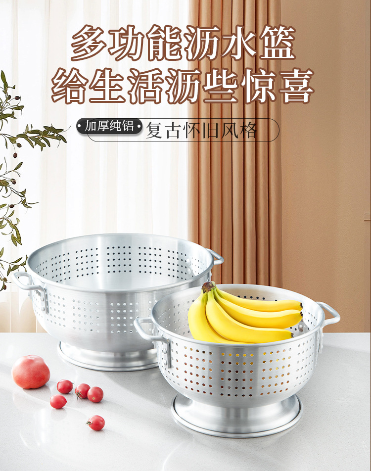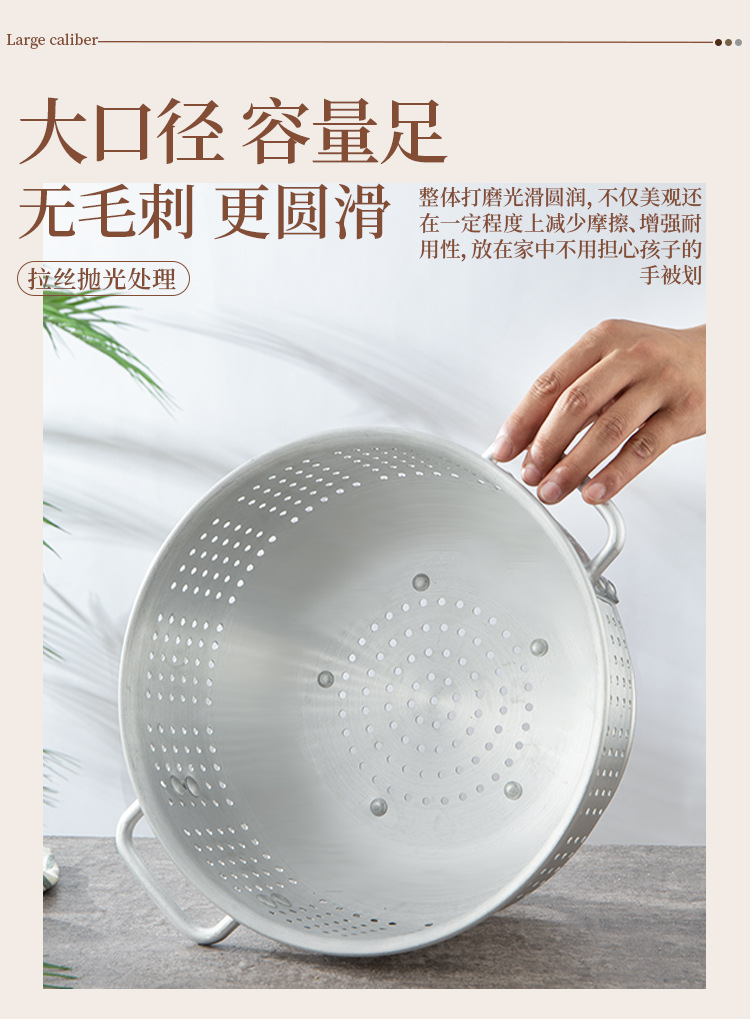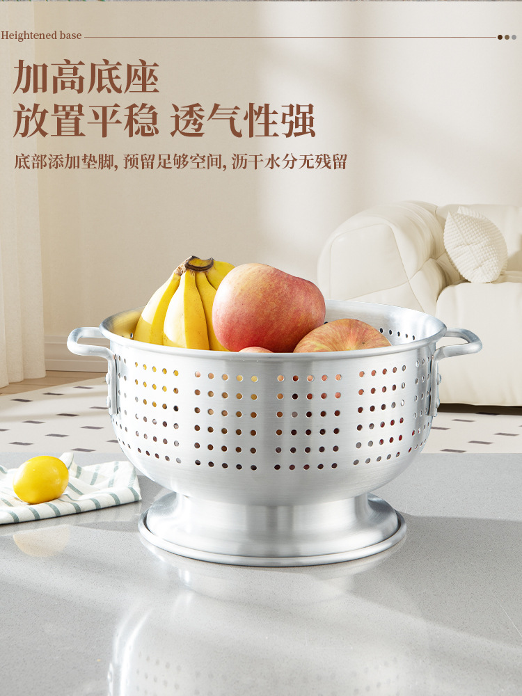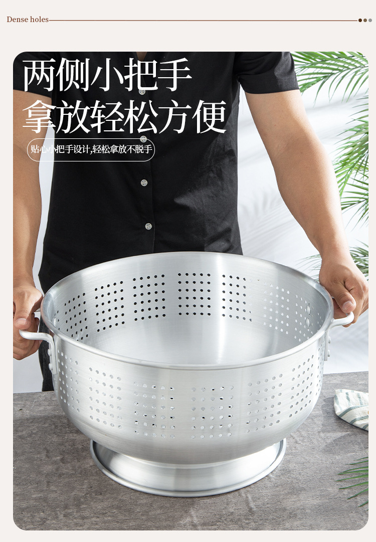 輸出アルミ製の米を洗うふるいは足の両耳の果物のたらいを持っています。