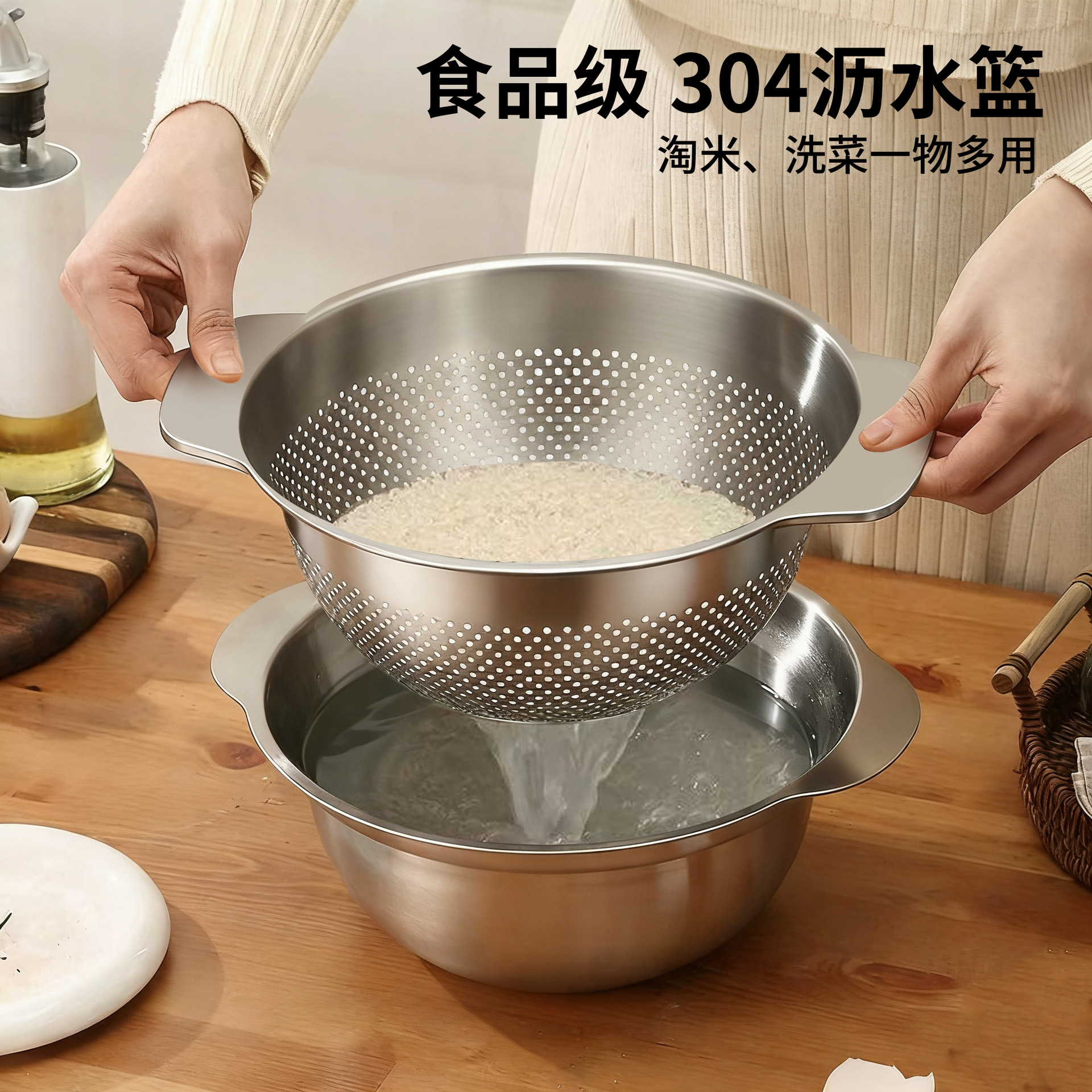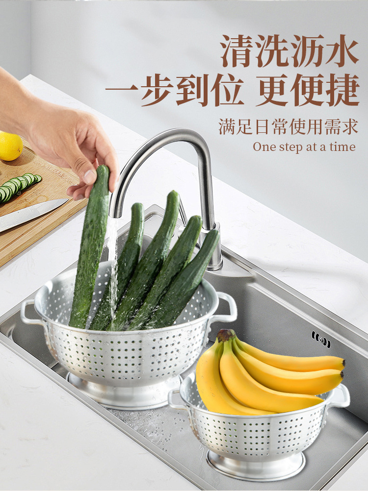 沥水盆304不锈钢套装加厚食品级家用厨房洗菜洗米打蛋面盆水果篮
