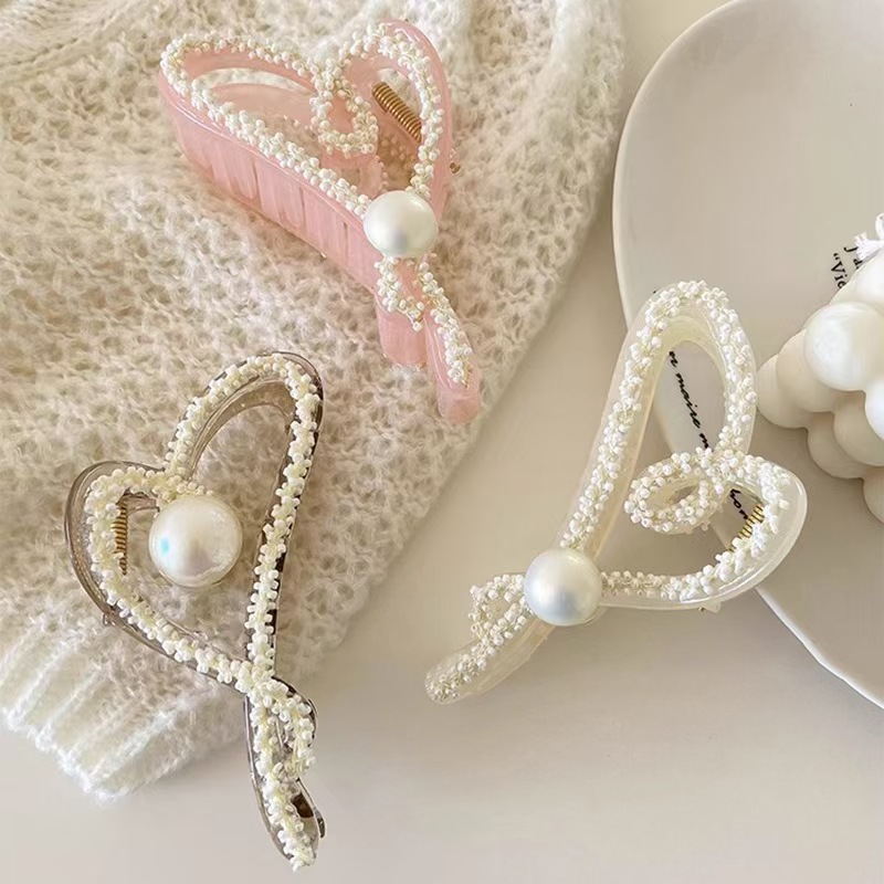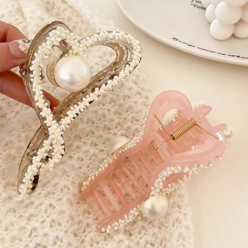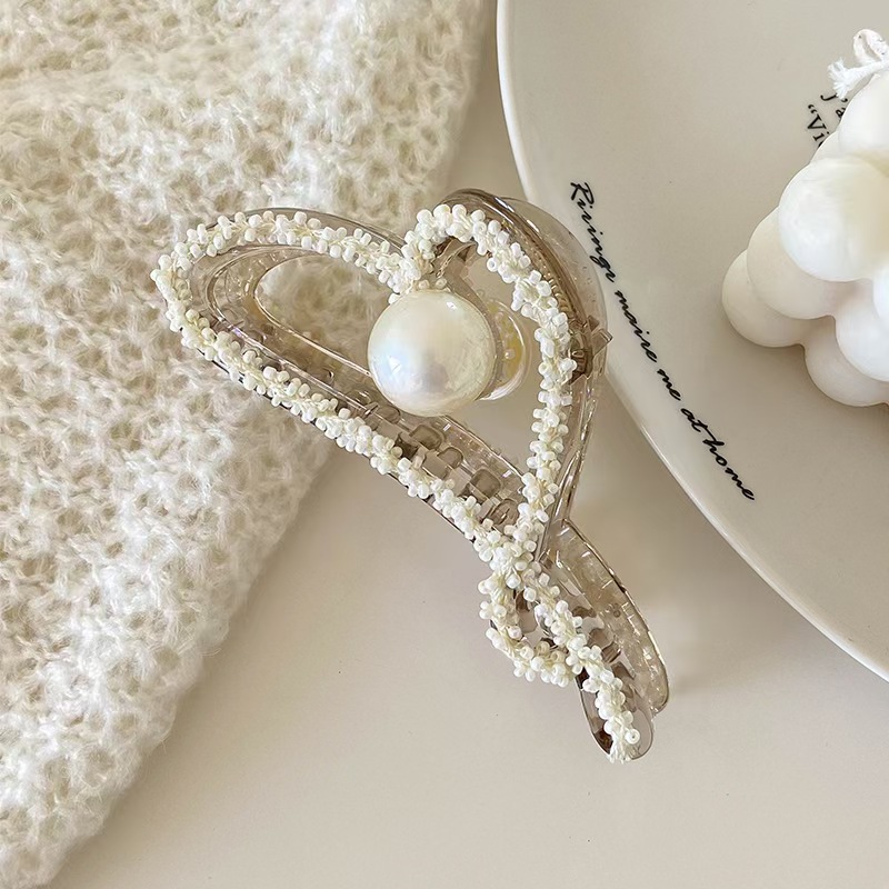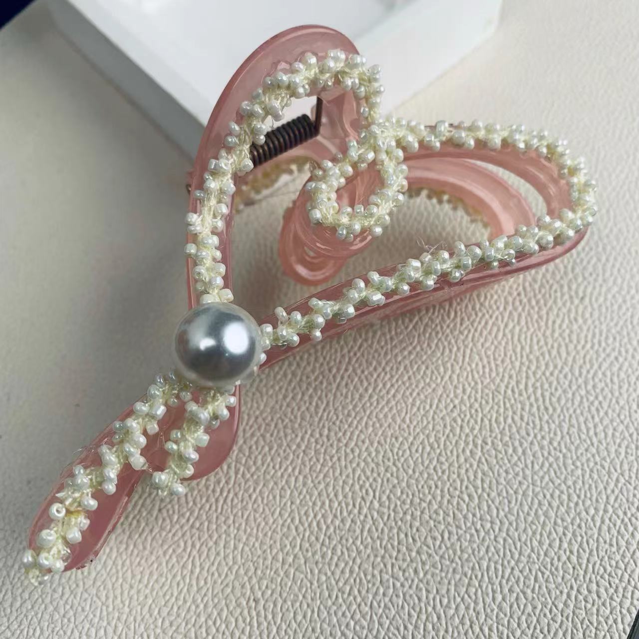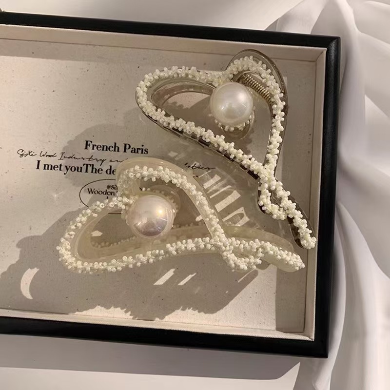 愛真珠クリップ女小香風2024新高級感髪量多後頭部クリップ大サメクリップ